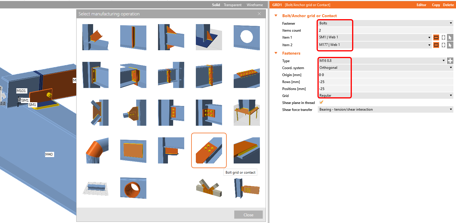 Add the operation Bolt/Anchor grid and modify the parameters.