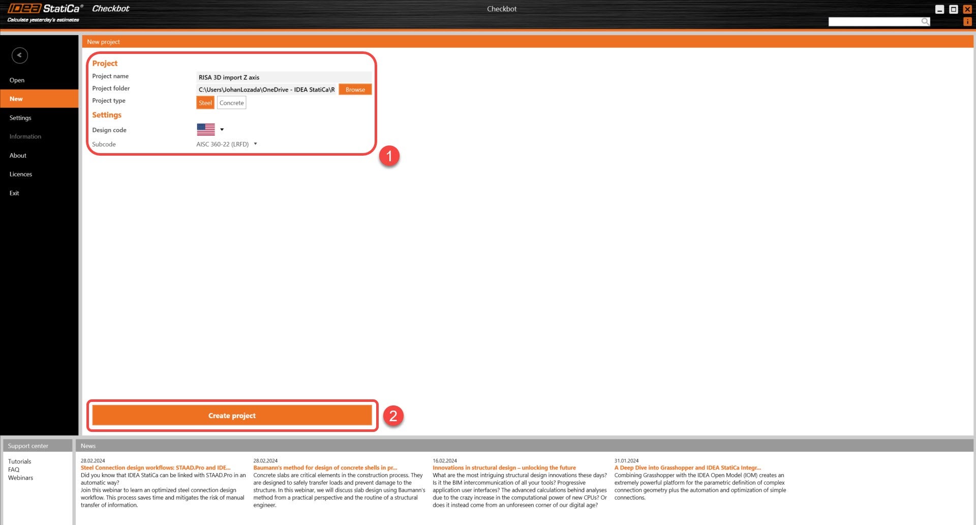 Notes: The SAF-based integration is developed and maintained by RISA. IDEA StatiCa is not involved in maintaining this integration. All technical requirements and questions should be addressed to RISA directly.