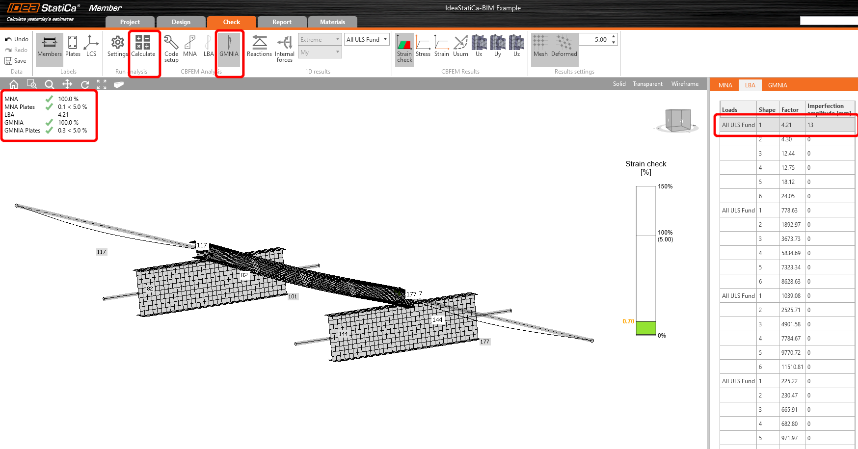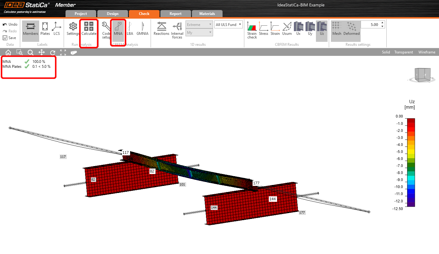 Select the Tab Check and run the MNA (materially non-linear) Analysis.