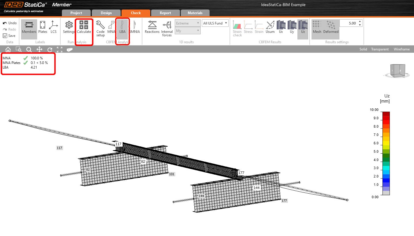 The second analysis is LBA (lateral buckling analysis), where we get a critical factor of less than 15.