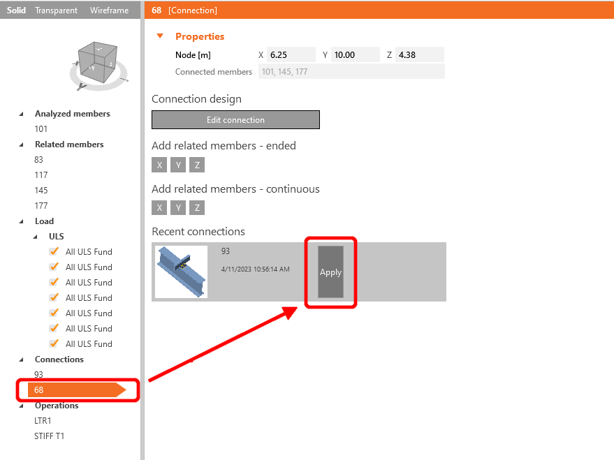 As we have similar joints on both sides of the member, you can copy the operations from the first joint to another by clicking Apply.