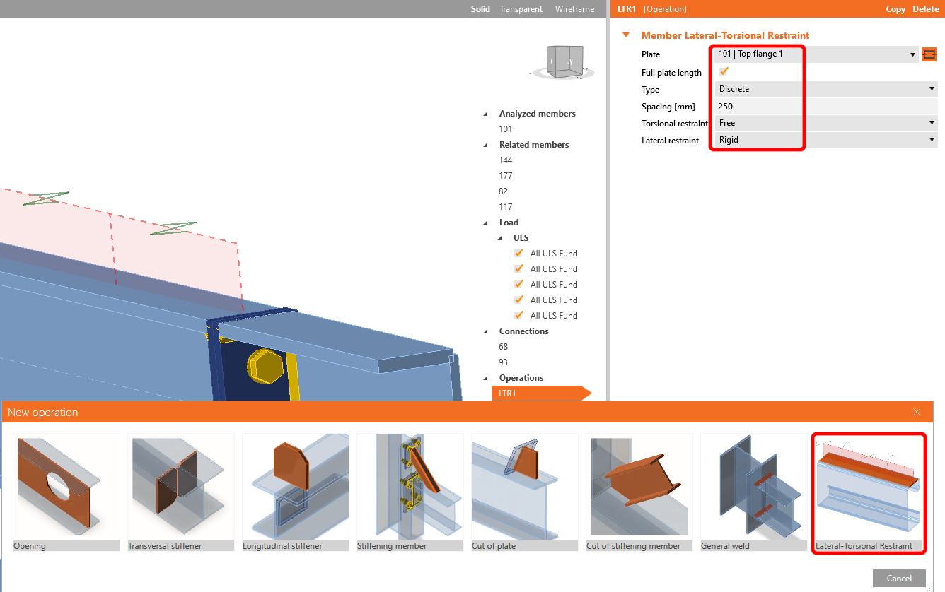 Before starting the analysis, firstly left-click on the U-member, add operation Lateral Restraint, and set up the values according to the picture.