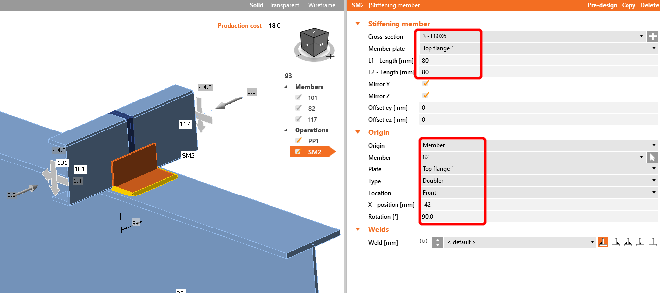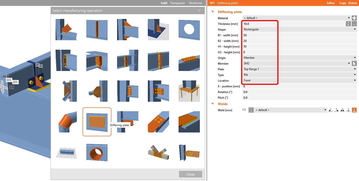 Now add a Stiffening plate to the joint and set the values according to the picture.