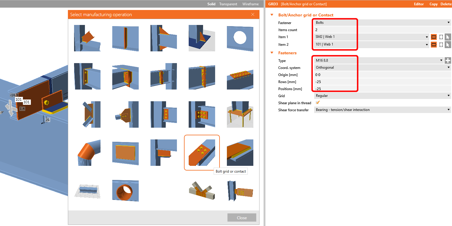 Add the operation Bolt/Anchor grid.