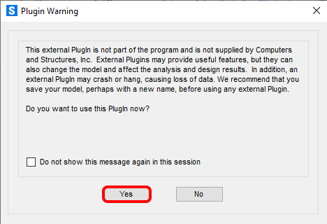 After that, you will see an informative notification from SAP2000, accept it by clicking OK.