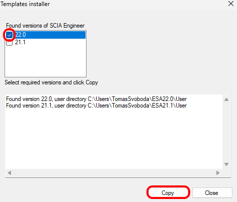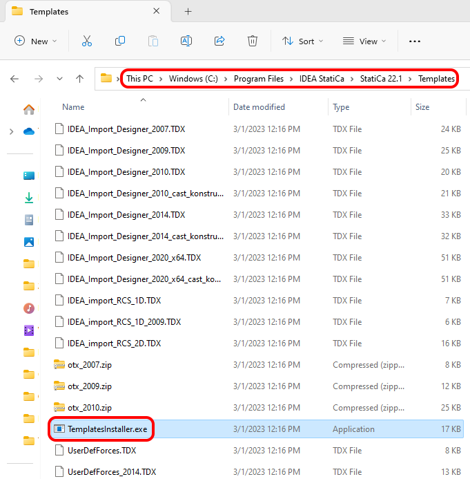 Before you import your first example, it is necessary to install the templates into Scia Engineer. To do that, you need to run TemplatesInstaller.exe usually to be found in the default installation folder of IDEA StatiCa (c:\Program Files\IDEAStatiCa\StatiCaX\Templates). There is no need to do this operation again if you do not change the SCIA Engineer version.