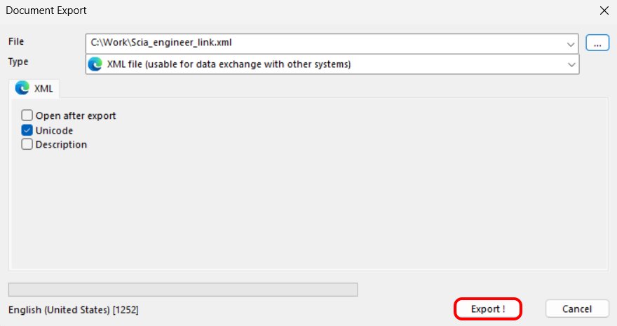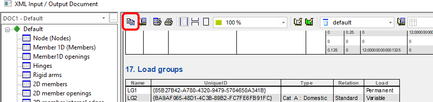 Open the model Scia_engineer_link.esa from downloaded source files, run linear analysis to obtain the results and in Tools menu select XML file.