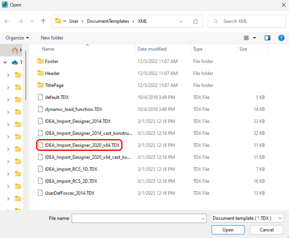 IDEA_Import_Designer_2020.TDX is a default template for the export of the whole model in Scia Engineer and is well described in the first chapters of this tutorial.