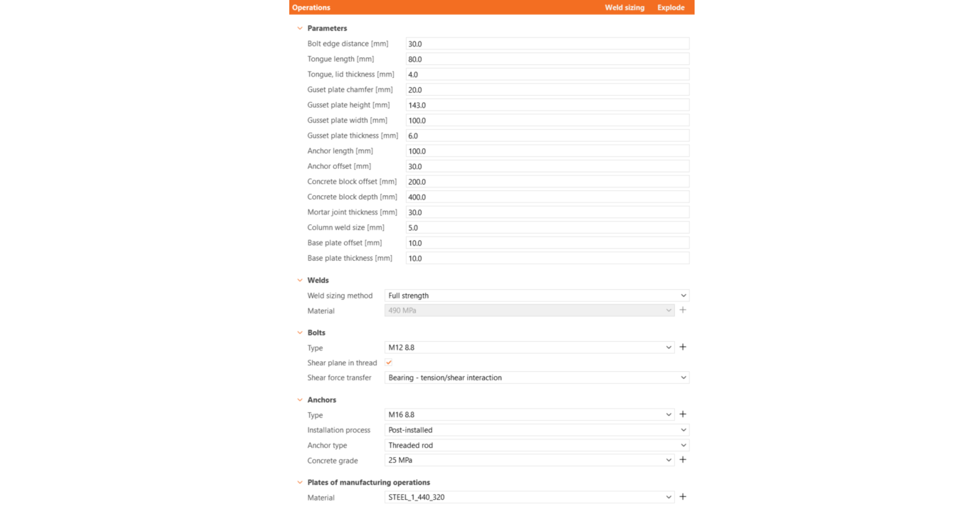 That completes the design of the connection for the column base plate with a diagonal brace.