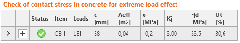 All values required for check are printed in tables. Ut is the utilization of the most stressed element. Since plastic redistribution of stress in weld is used, it is the decisive utilization. Utc provides information about utilization along the weld length. It is the ratio of actual stress at all elements of the weld to the design resistance of the stress of the whole length of the weld.