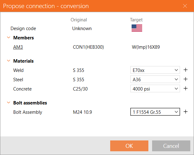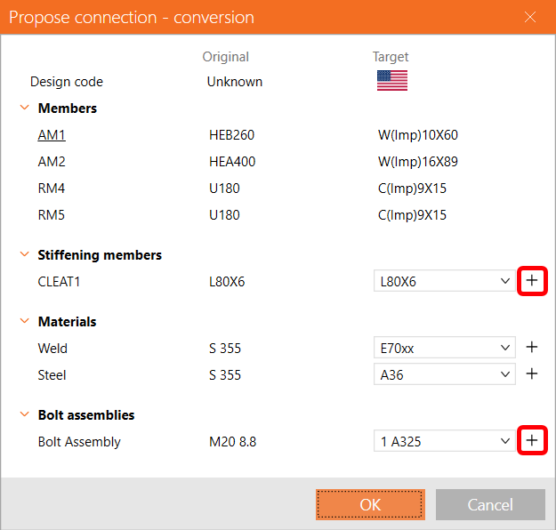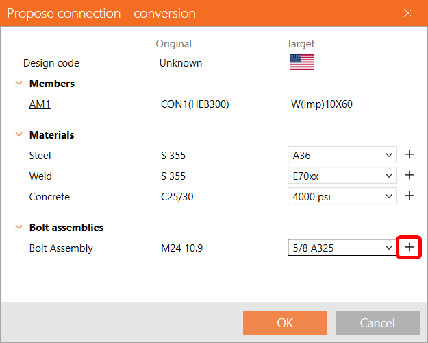 Press the + symbol next to bolt assembly type, choose 1" F1554 Gr. 55 and then press OK to continue.