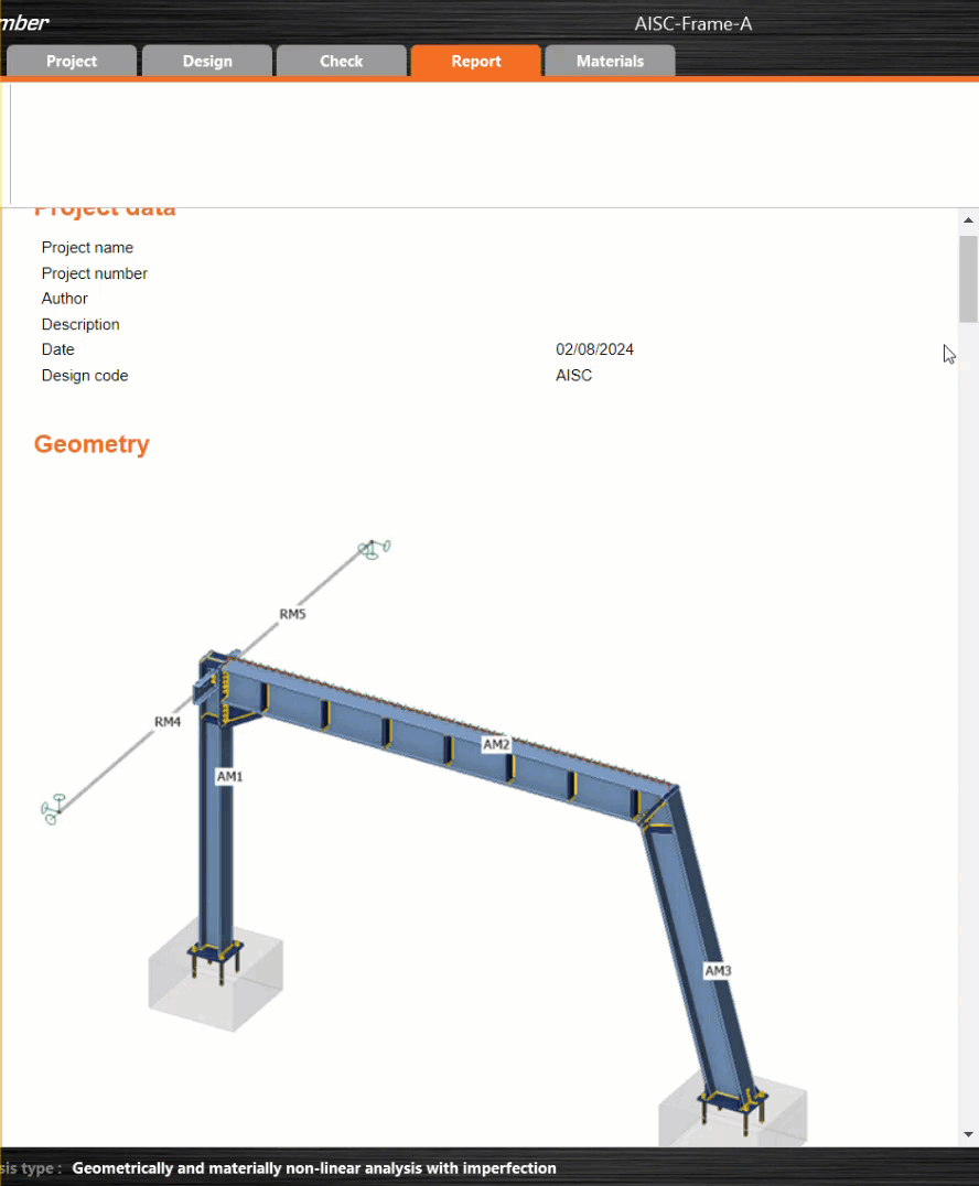 At last, go to the tab Report. IDEA StatiCa offers a fully customizable report to print out or save in an editable format.