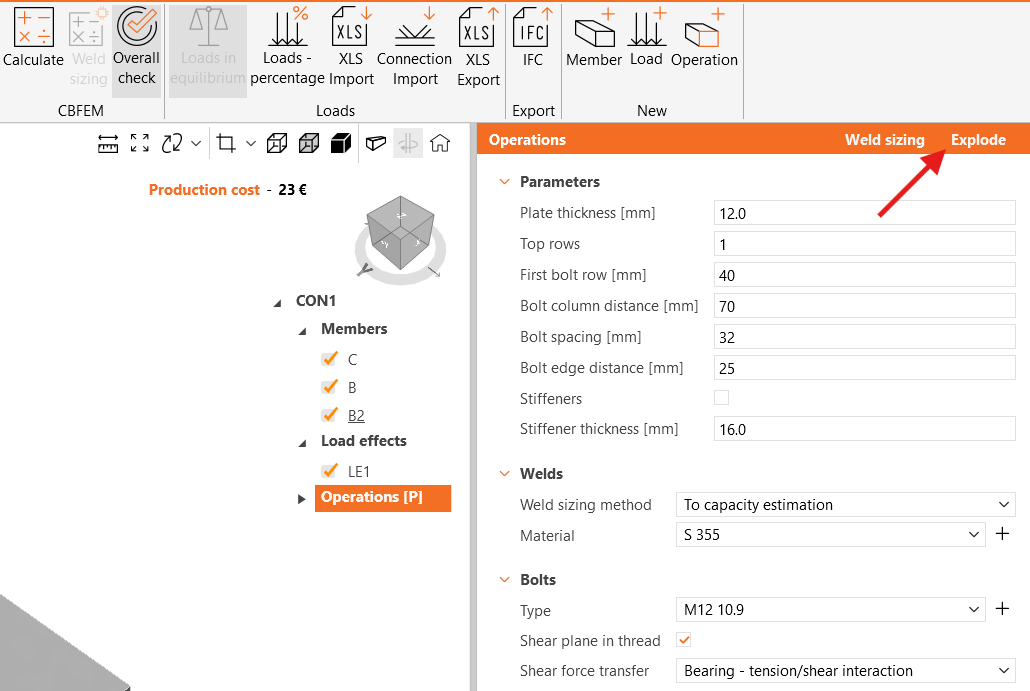Click on Operations and Explode the template to separate operations (EP1 and STIFF1).