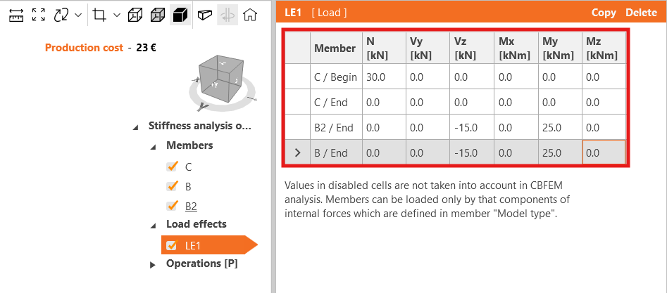 Adjust the values of the load effect LE1 accordingly.