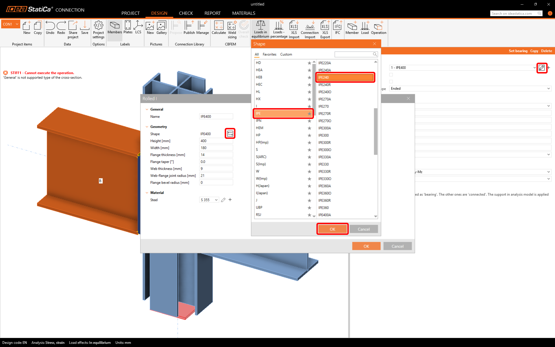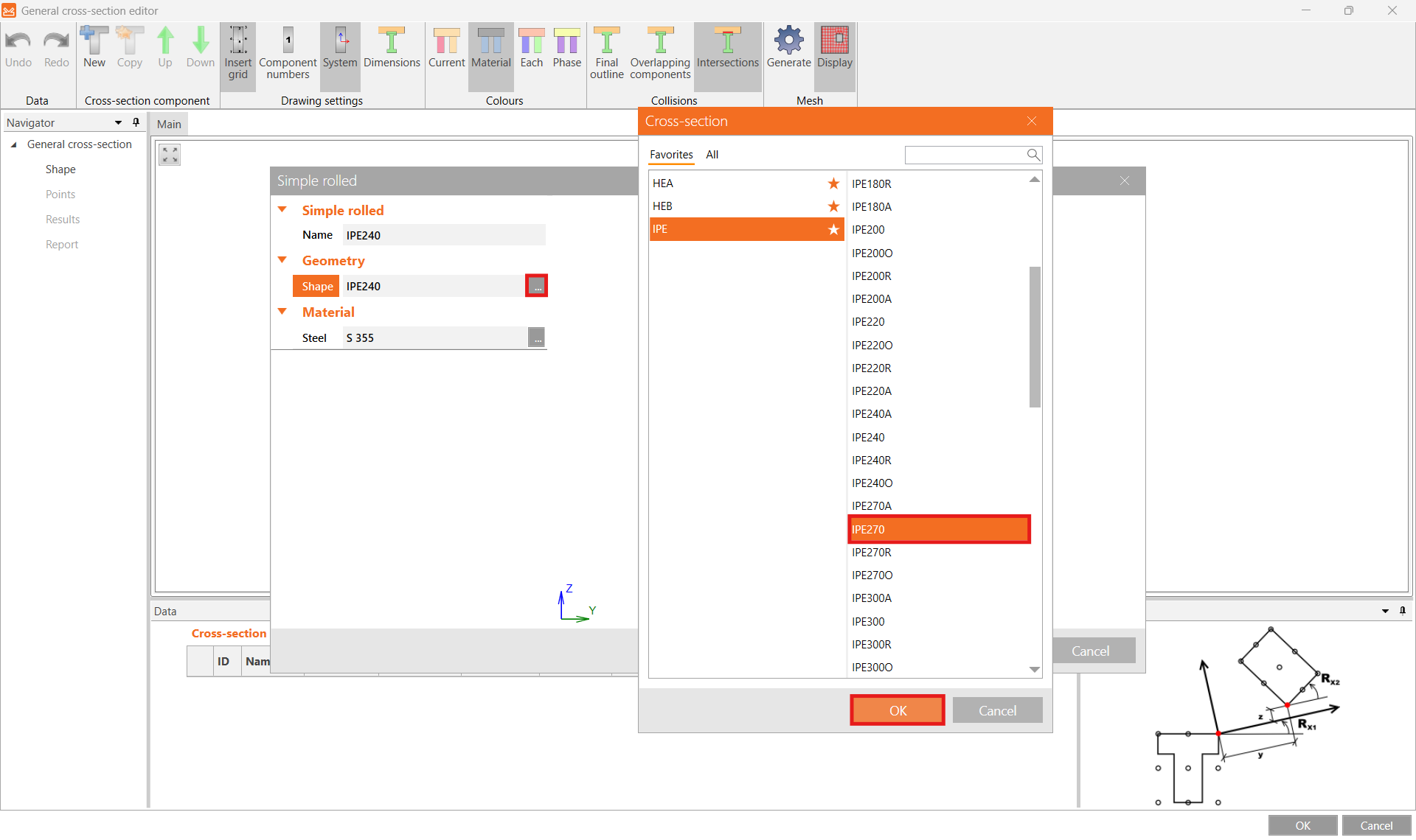 And switch the preselected profile to IPE270.