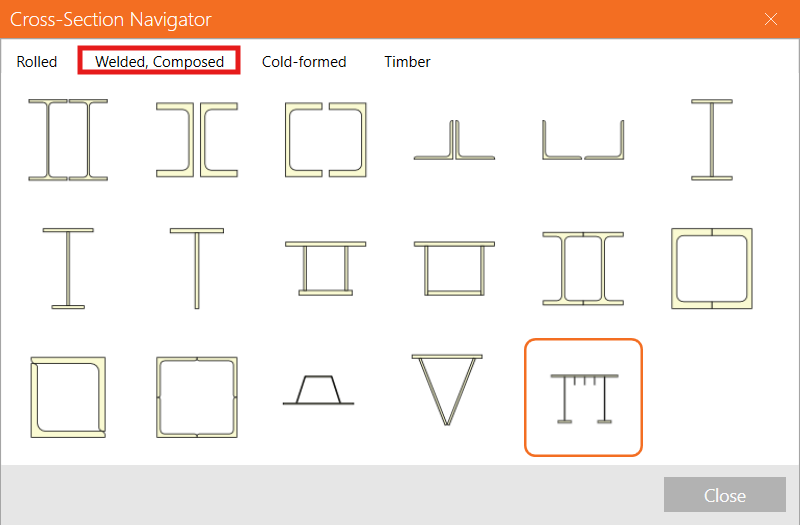 Go to the tab Welded, Composed, and select the General steel cross-section to add a user-defined shape.