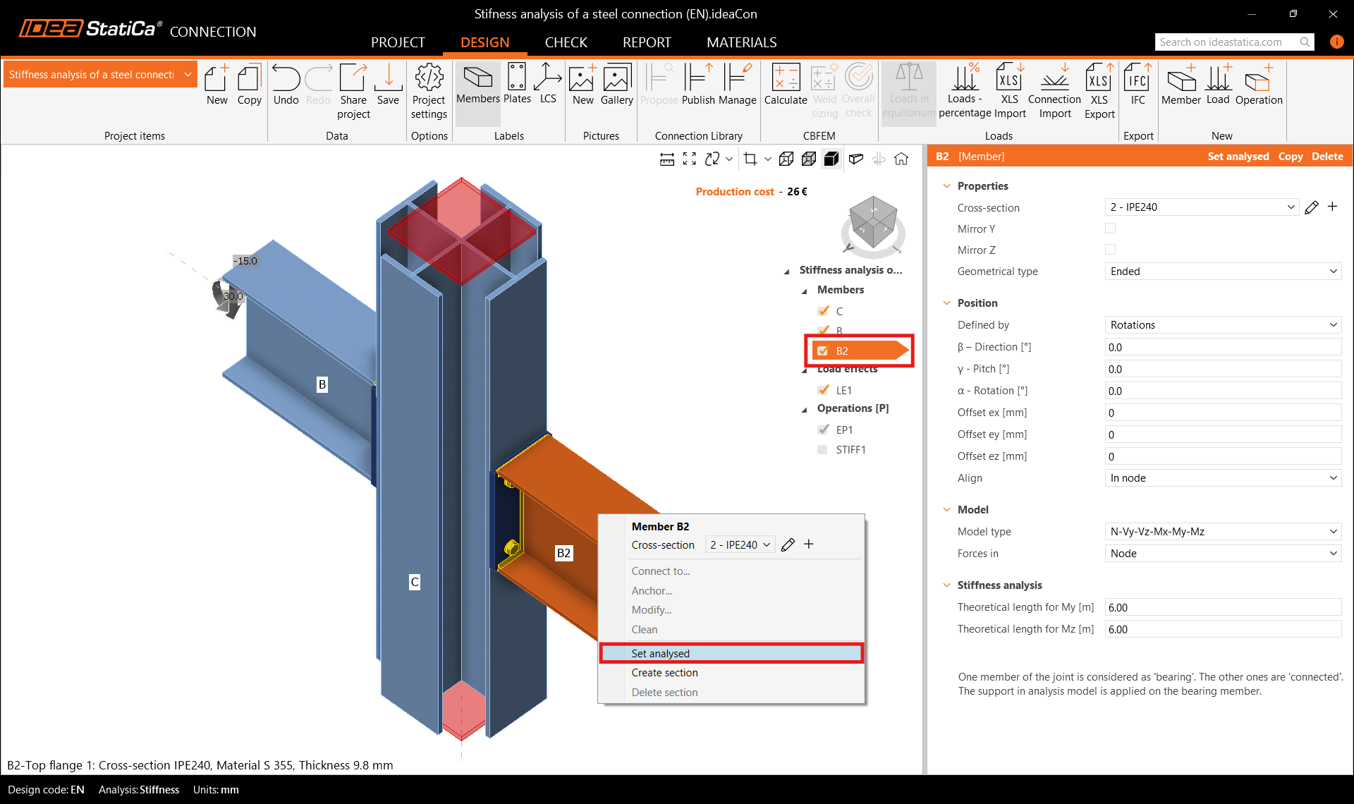 Note: For further understanding of the “Theoretical length for My, Mz” and the results, see the Stiffness analysis article and the Theoretical Background chapter Stiffness analysis and deformation capacity of steel joints.