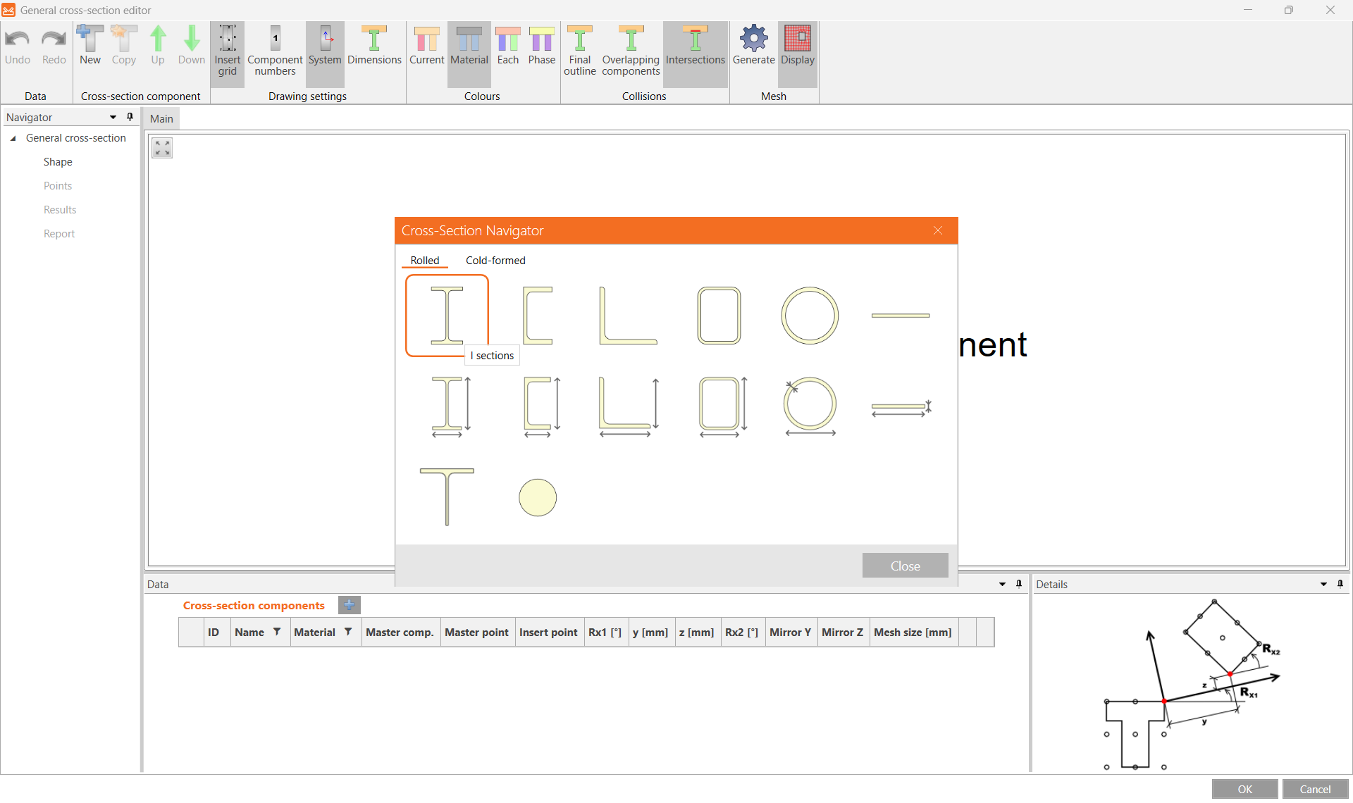 In the Cross-section editor, start by adding a new I-section.