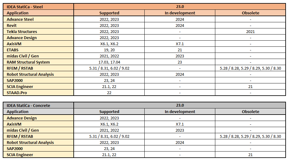 We have taken several actions to ensure the consistent update process of our BIM links. In each major release of IDEA StatiCa (this year, it will be 23.0 and 23.1), we support the two most recent major releases of each linked application. The older versions become obsolete, this happens in major IDEA releases only (patches will never disconnect older versions). On the other hand, when a new major release of the BIM application comes, we develop/update the link in two months – the link appears in a patch of IDEA StatiCa.