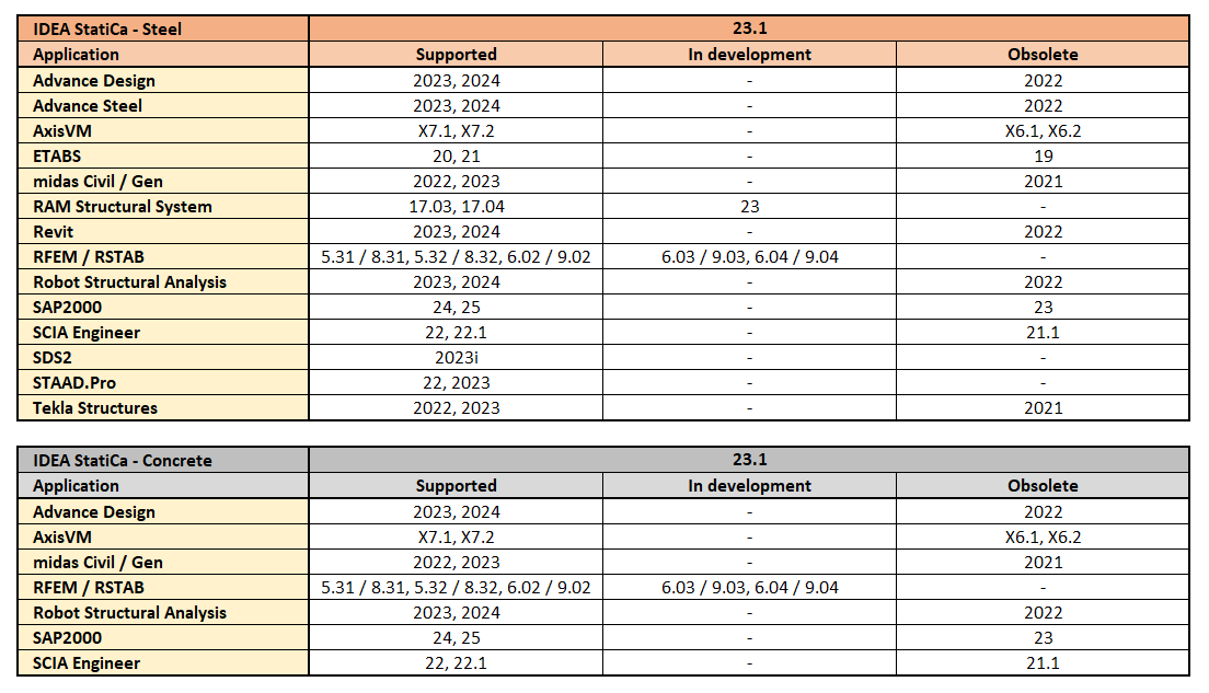 The currently supported versions in the latest IDEA StatiCa patch can be found in the BIM links: Supported versions of 3rd party applications page.