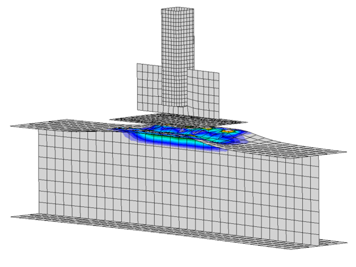 - Some mesh dependence was observed. For cases where the plastic strain limit controlled, IDEA StatiCa exhibited reduced strengths when the mesh size was set smaller than the default.