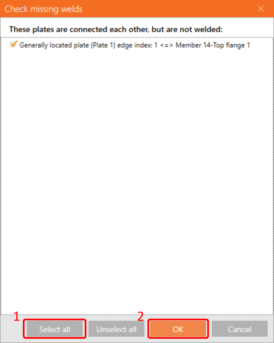 Currently, we've noticed that there are some missing welds in the model, but worry not, as this can be rectified using the 'Check missing welds' function.