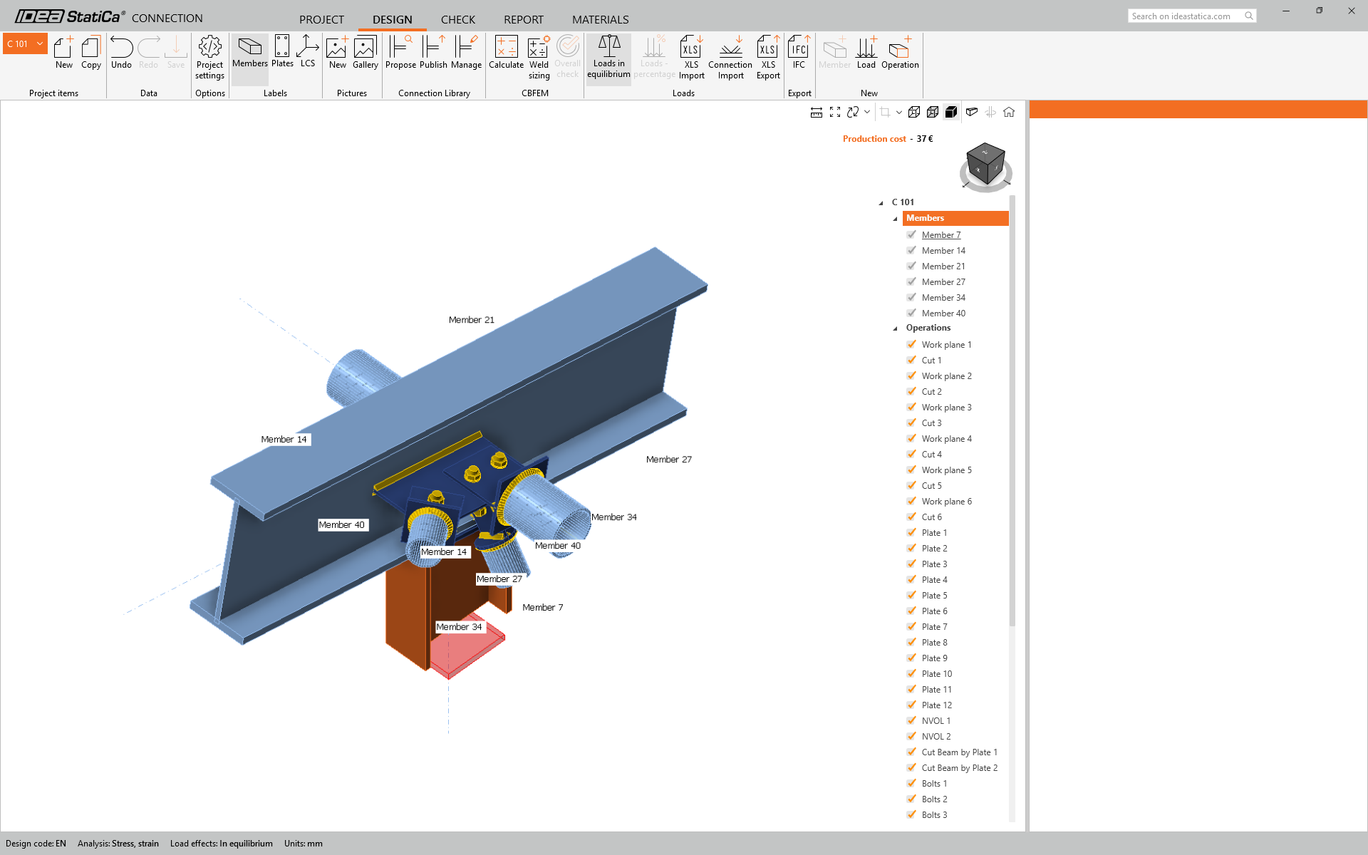 The imported connection is opened in the IDEA StatiCa Connection application.