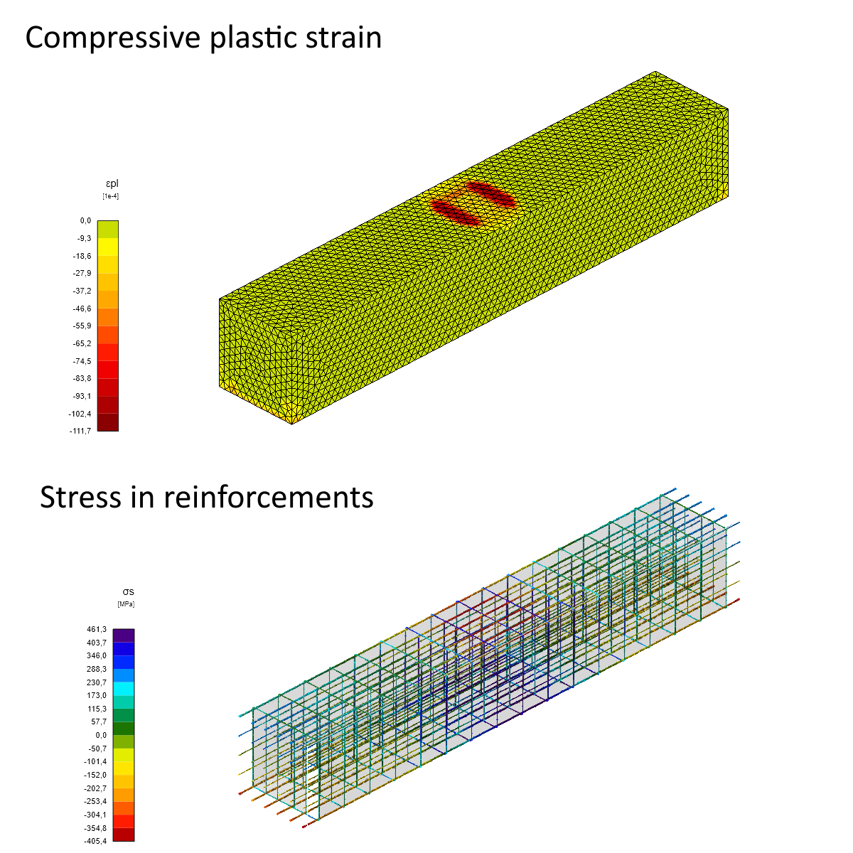 20) Compressive plastic strain and stress in reinforcements