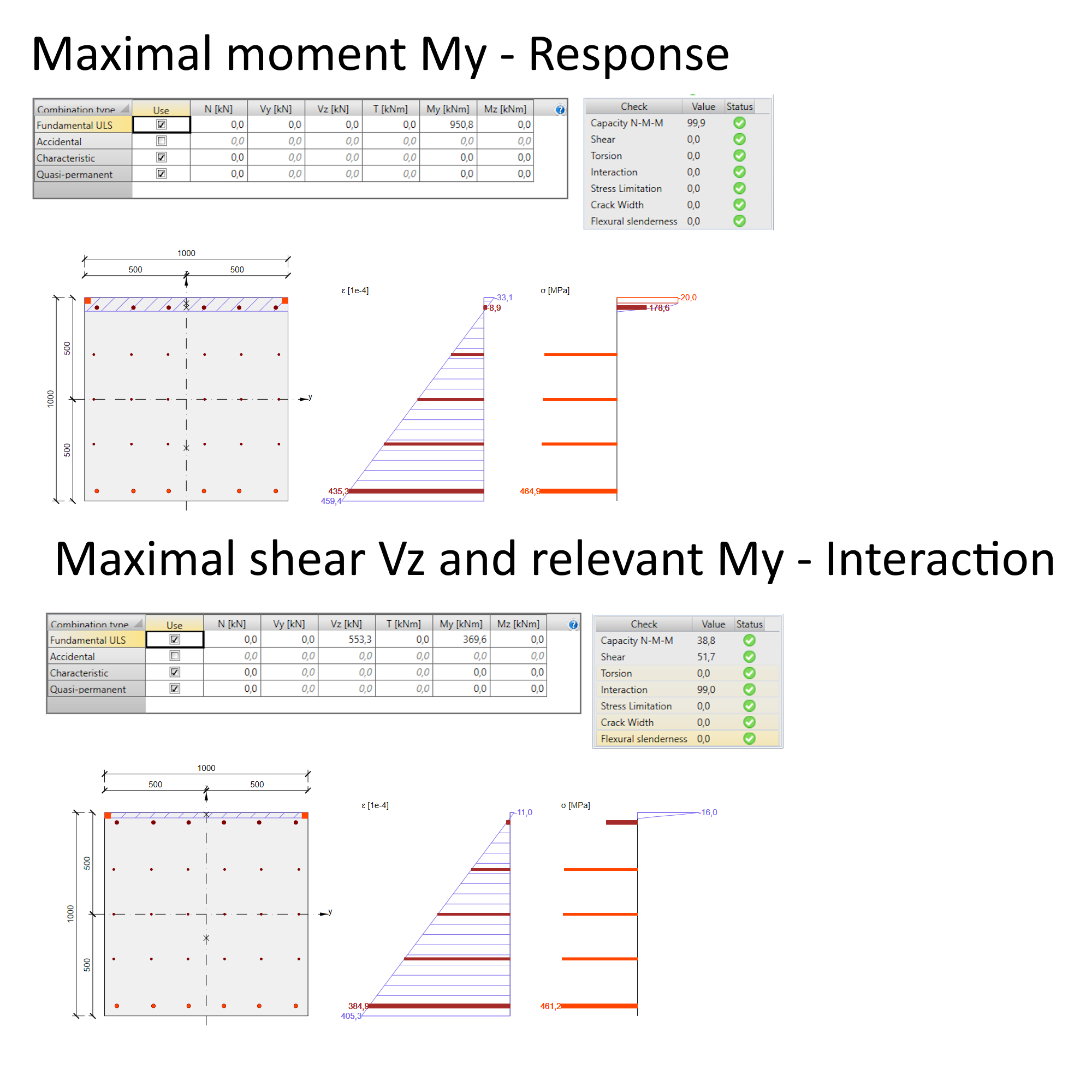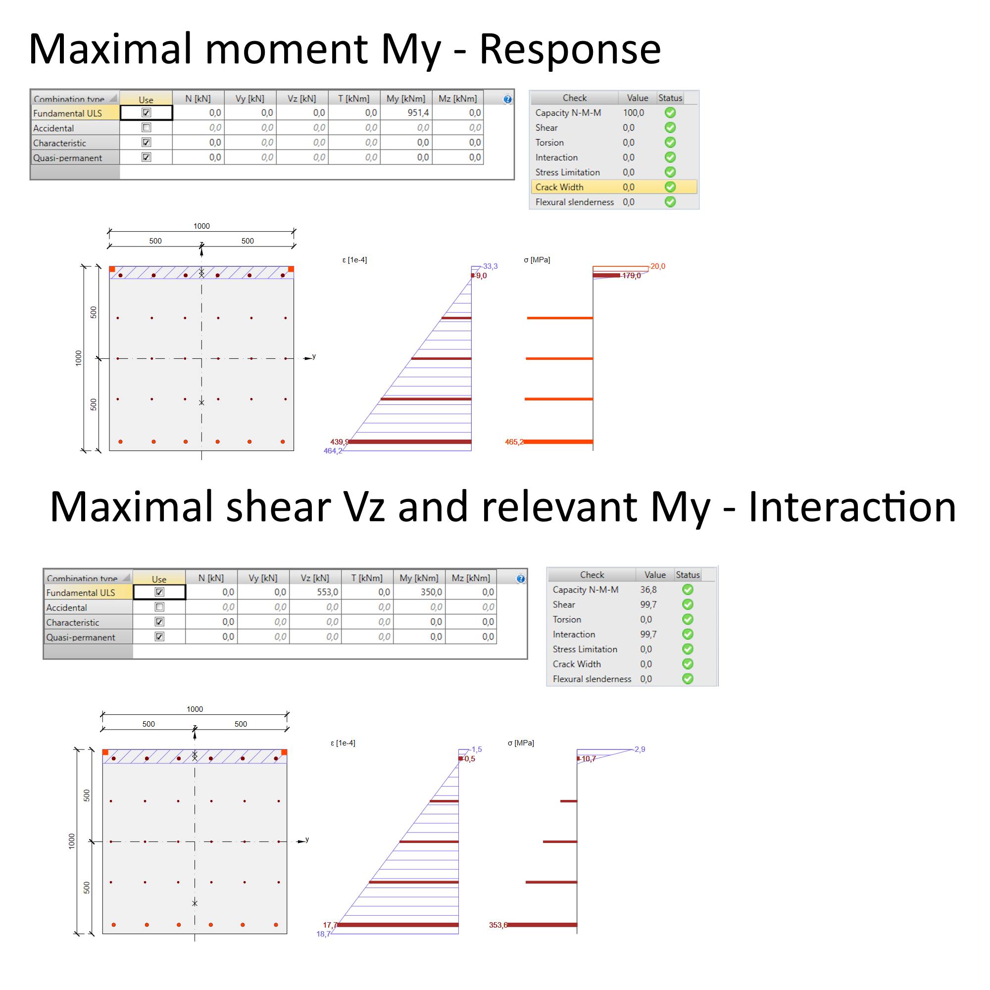 It is essential to note that all models are design models. For simulation and code-check verification, the partial factors for materials have been applied.