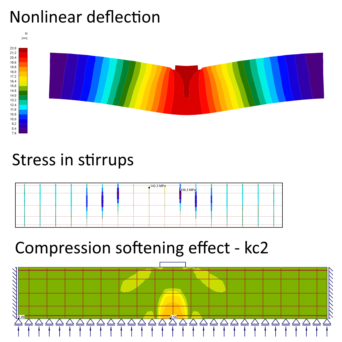 16) Nonlinear deflections, stress in stirrups, and localized compression softening