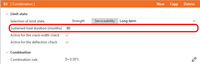 Based on the selected combination type (long-term or short-term), either long-term or short-term deflection is evaluated. The maximum allowable deflection value shall be determined by the user and shall be considered in accordance with AS 3600 Cl. 2.3.2.