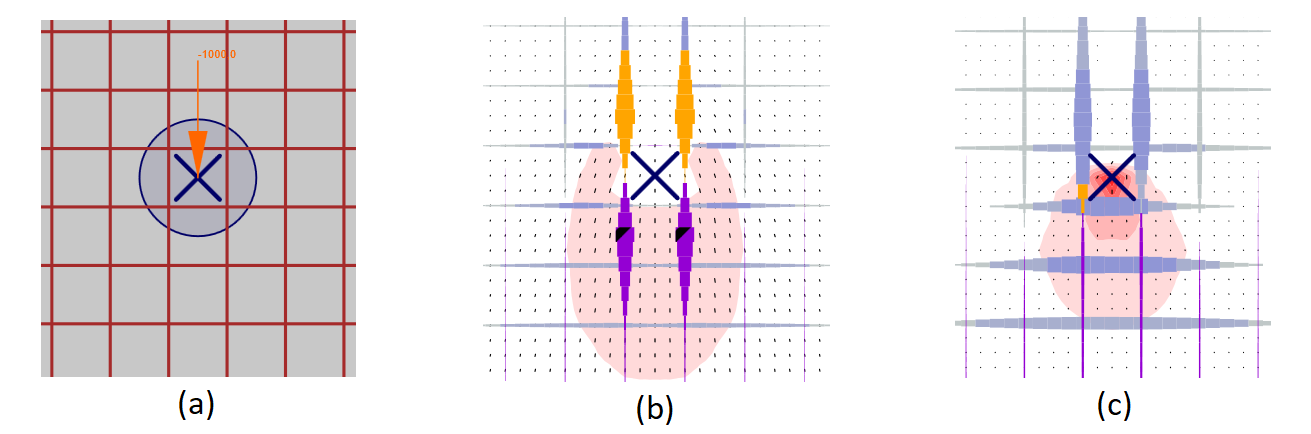 \[ \textsf{\textit{\footnotesize{Fig. 9\qquad Patch load: (a) load application; (b) load transferred through rebars (a group of bars for the load transfer is defined);}}}\]