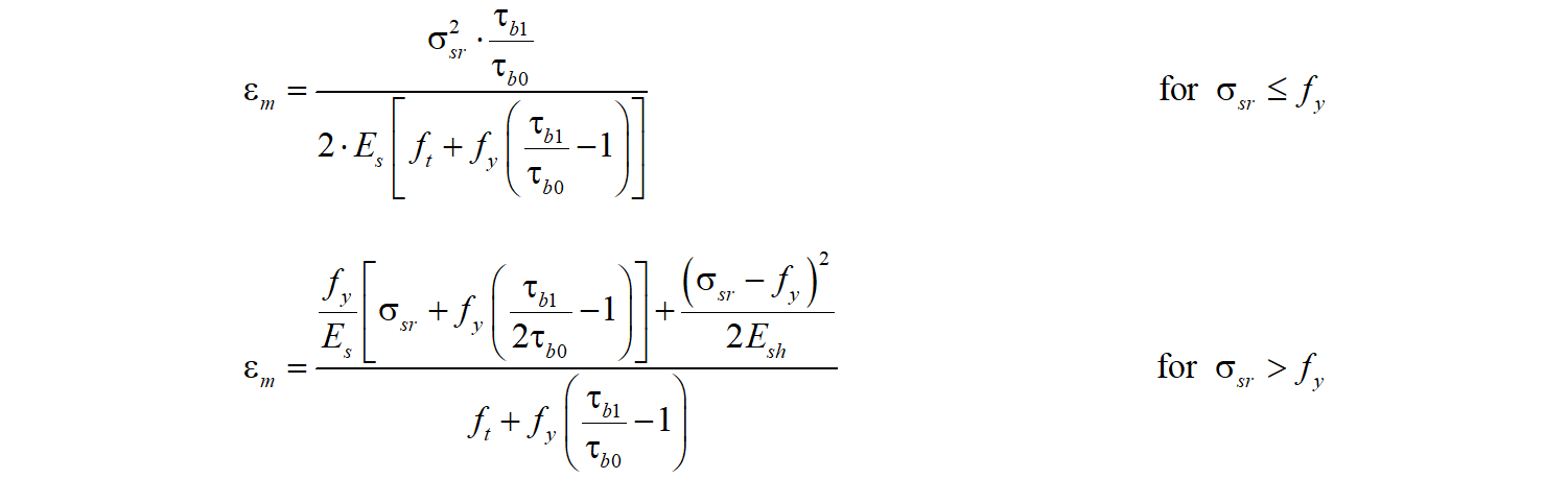 Tension stiffening is accounted for by modifying the input stress-strain relationship of the bare reinforcing bar in order to capture the average stiffness of the bars embedded in the concrete (εm).