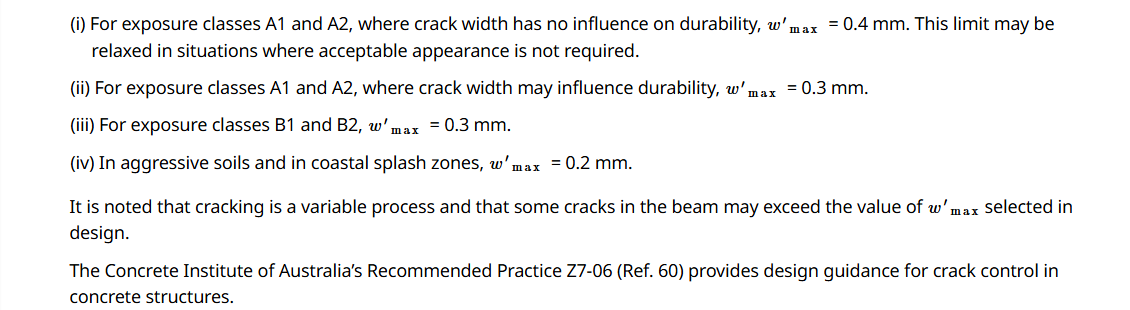 Alternatively, according to AS3600:2018 Sup 1:2022 Cl. C8.6.1 - For structures subjected to the long-term service loads, recommended values for wlim are as follows: