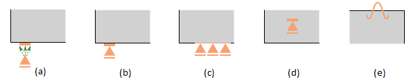 \[ \textsf{\textit{\footnotesize{(a) point distributed; (b) bearing plate; (c) line support; (d) patch support; (e) hanging.}}}\]