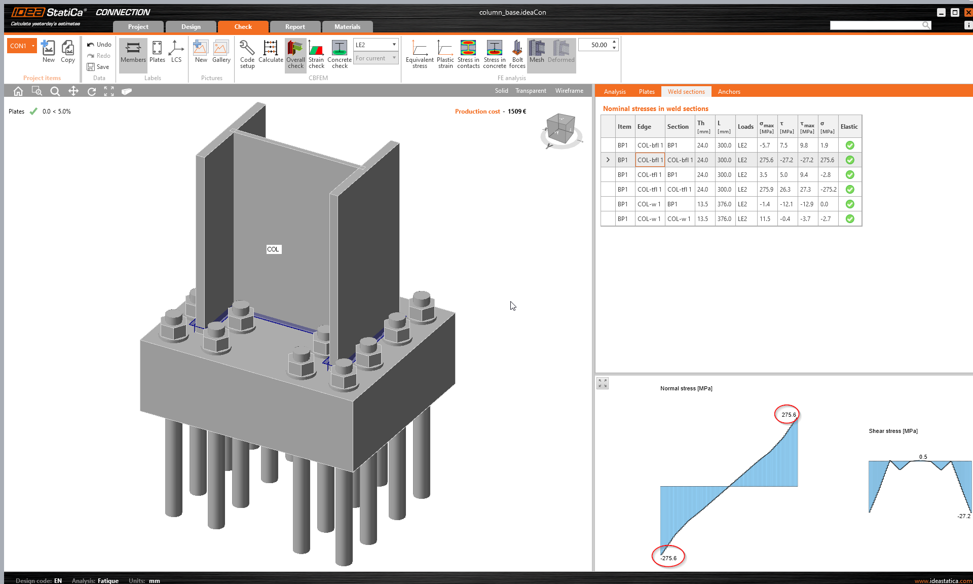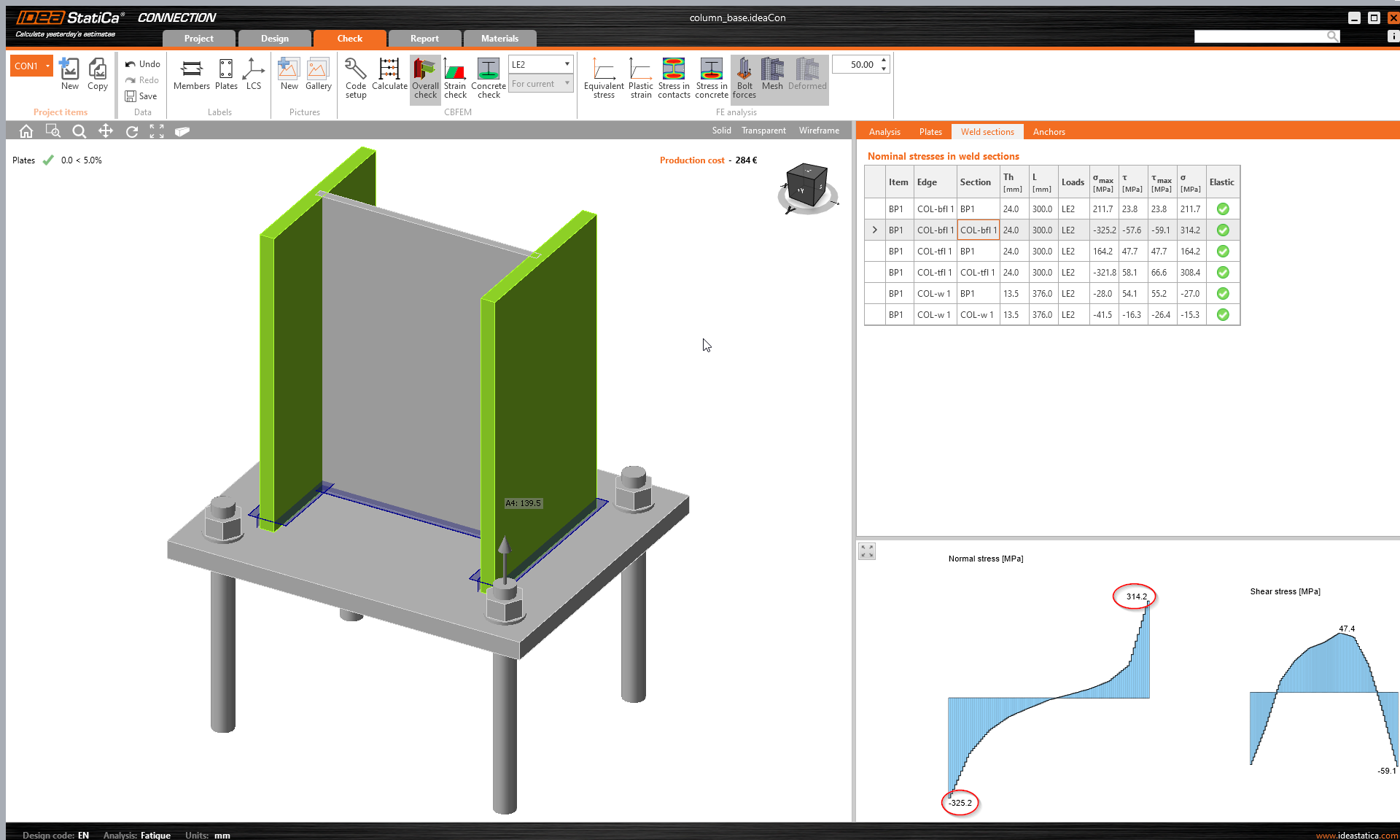A real-life example may be more tricky to explain. Let's change base plate thickness to 30 mm and use just four anchors M36 8.8: