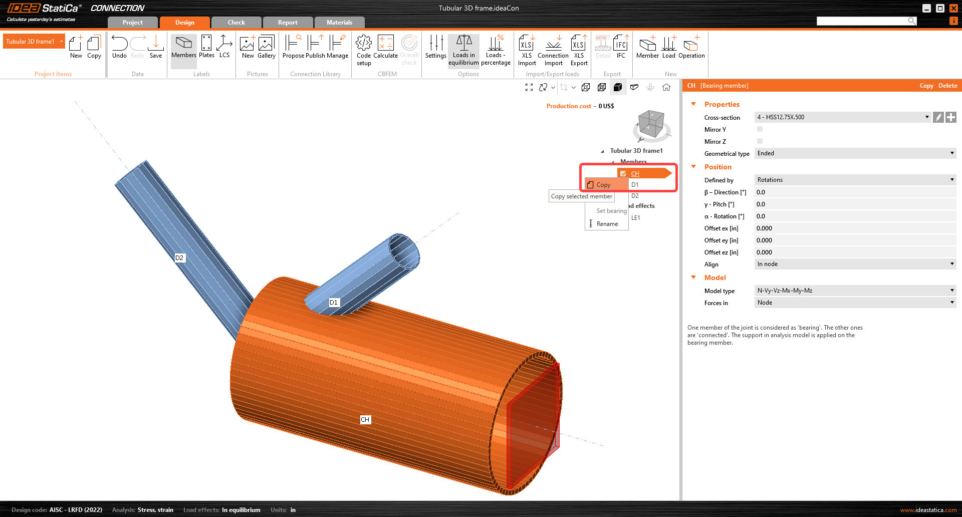 Take advantage of the prepared member to copy its properties, under the tree of the entities, right-click  member CH and select Copy command.