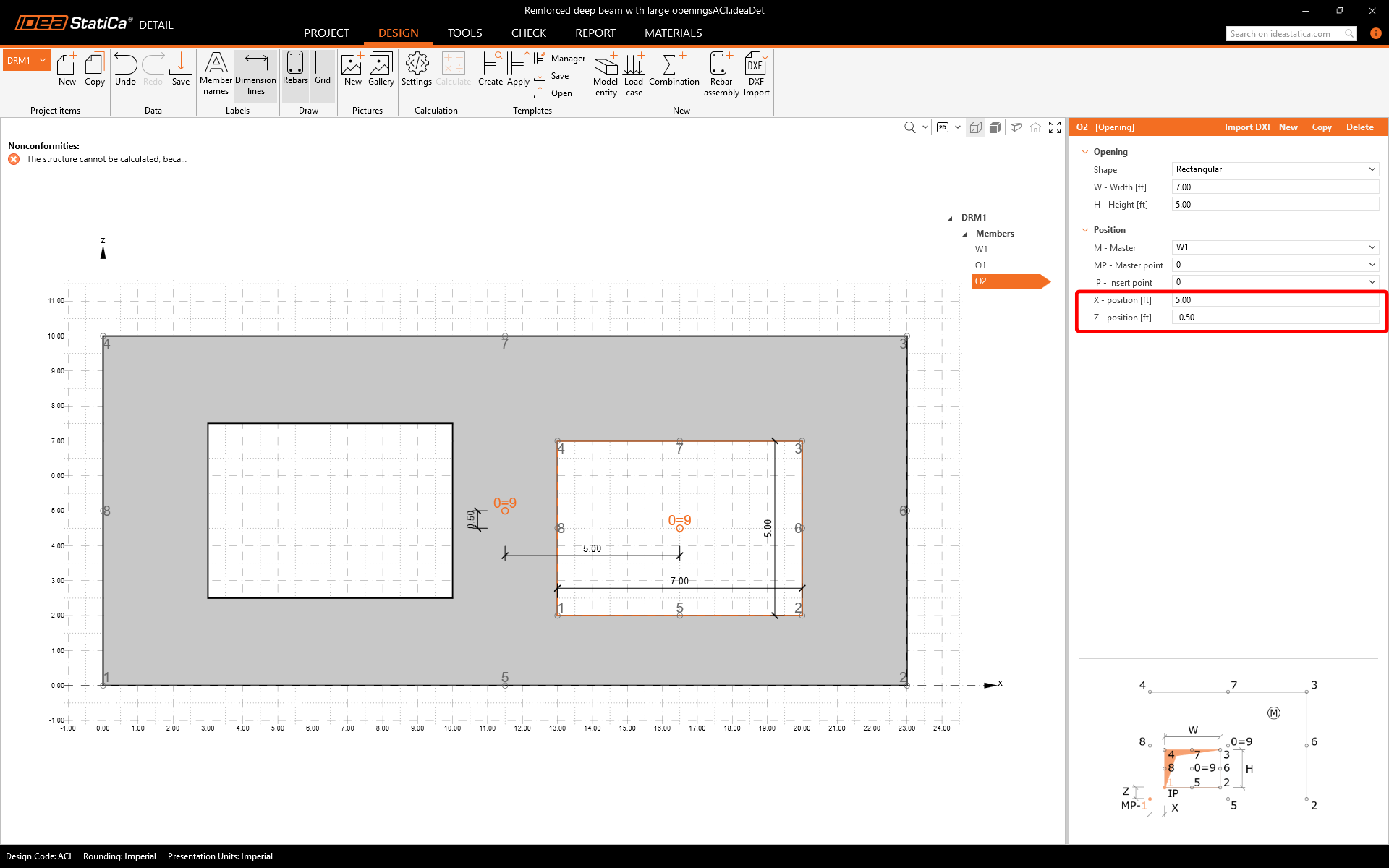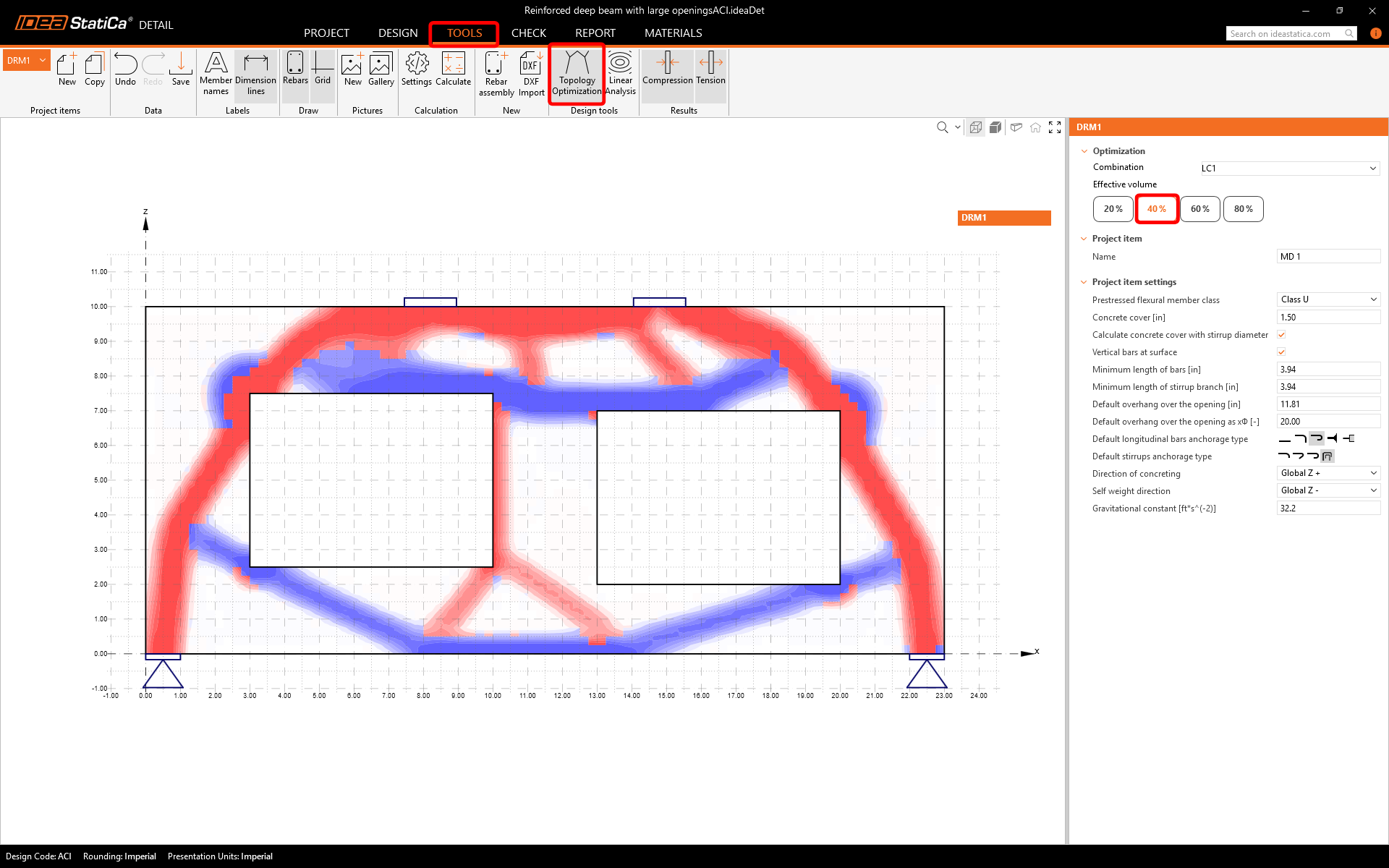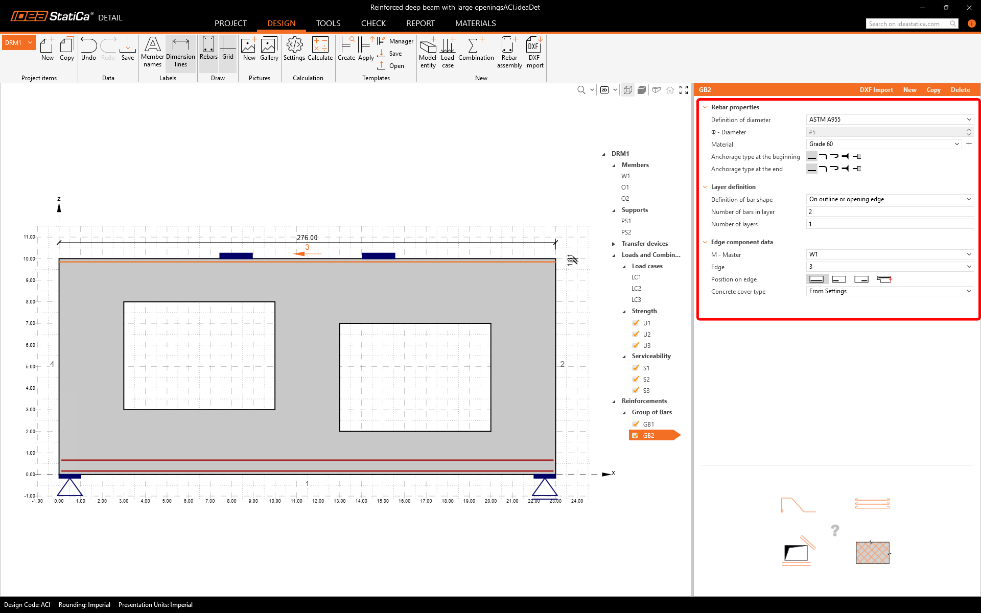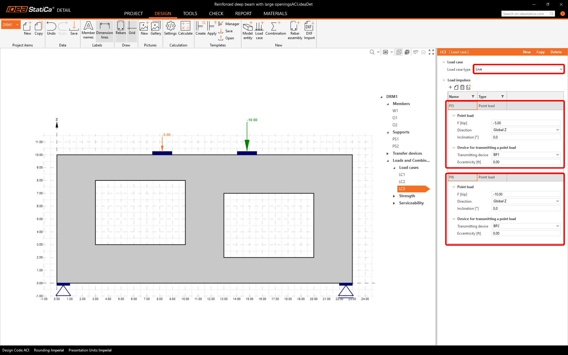 You have designed, optimized, and code-checked the Reinforced Deep Beam with with non-aligned openings.