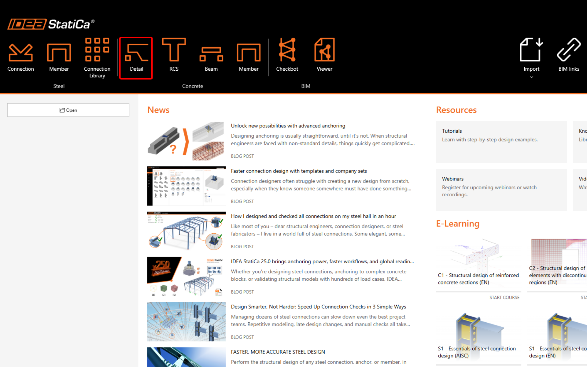 Let’s launch the IDEA StatiCa Detail application (download the newest version). In the main window of IDEA StatiCa, open the Detail application to start a new project.