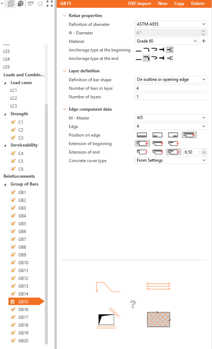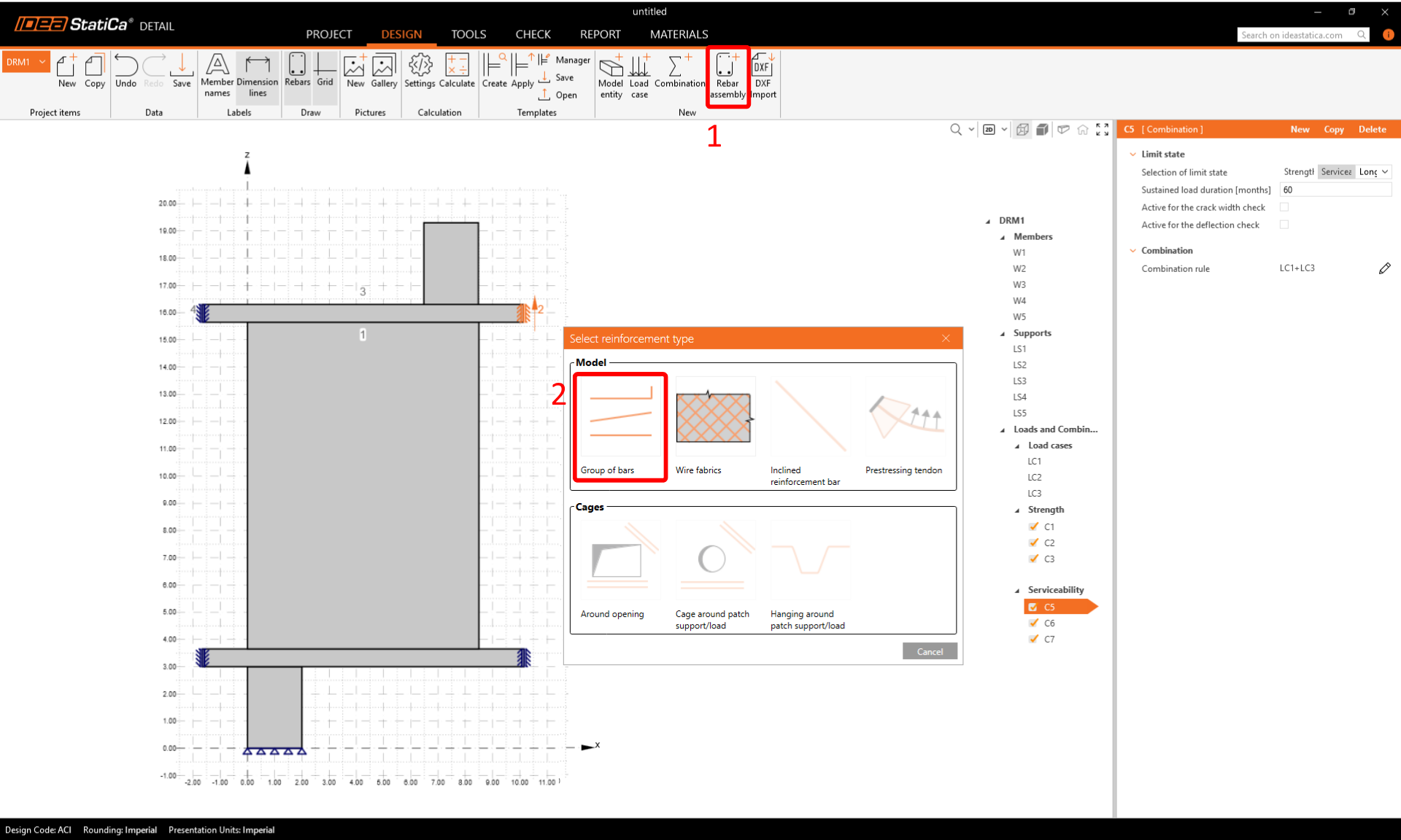 Now design the reinforcement. Click on the Rebar assembly in the section New. Select reinforcement type Group of bars.