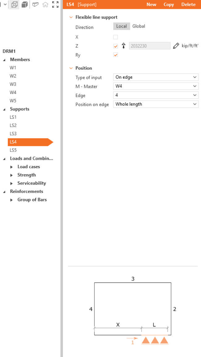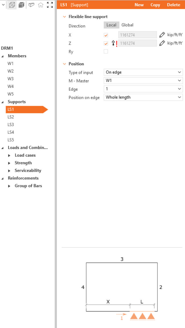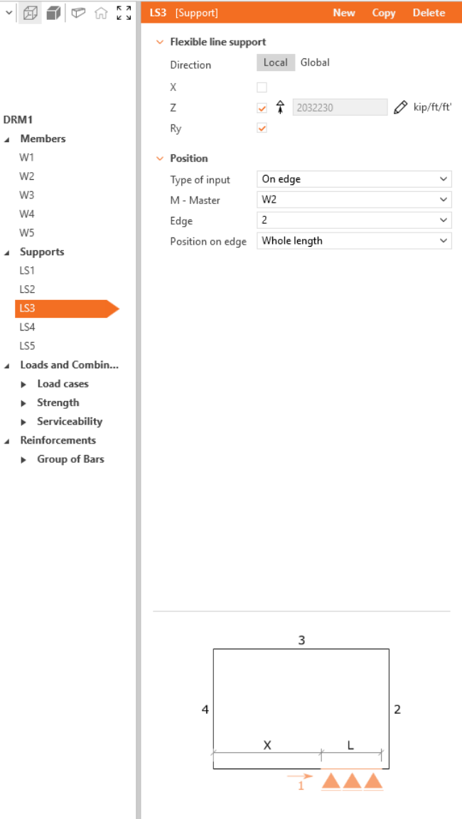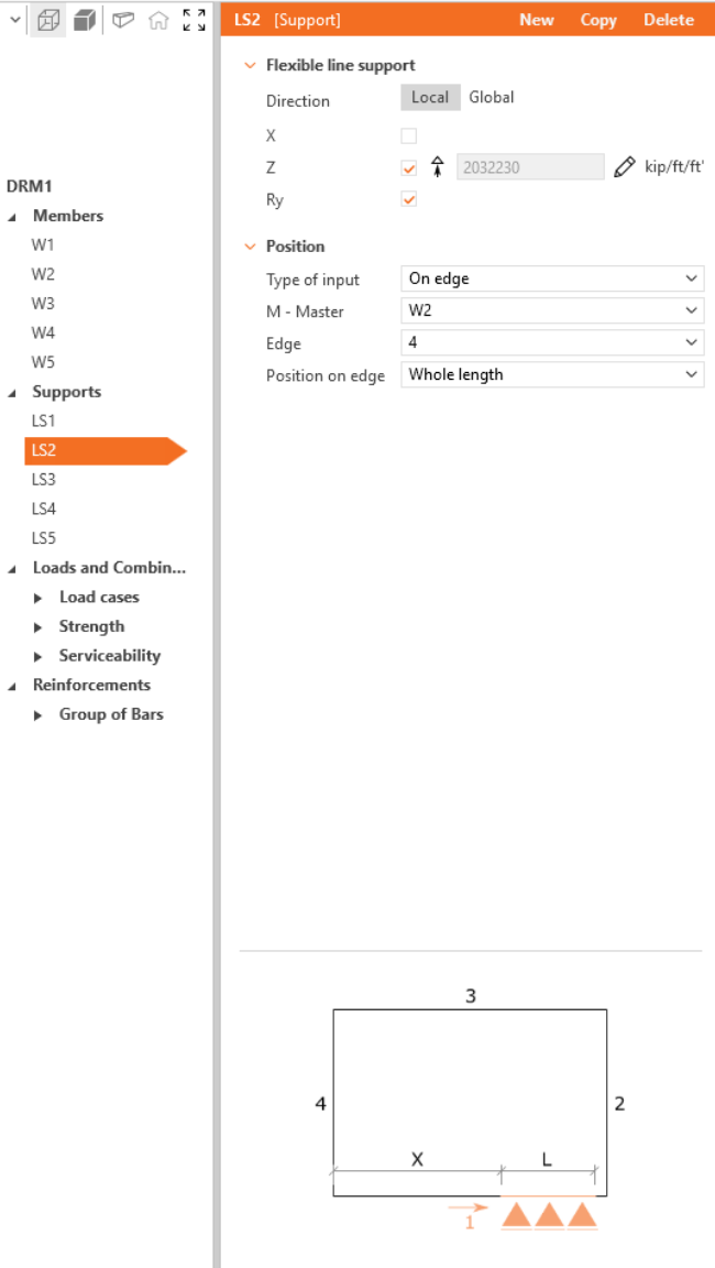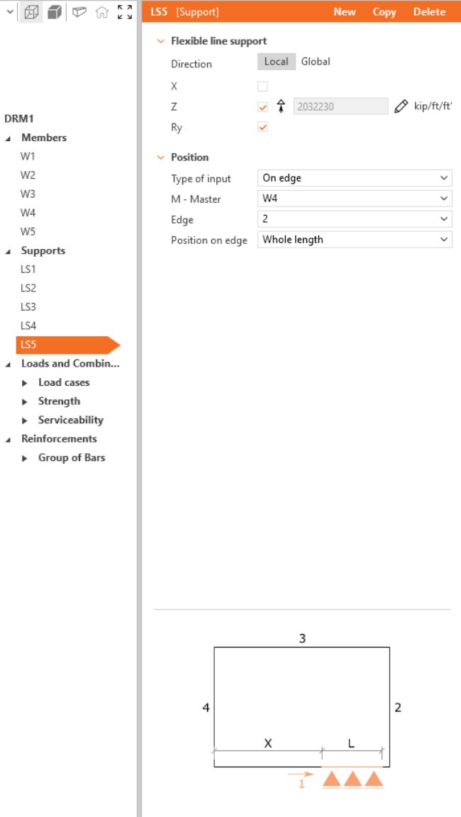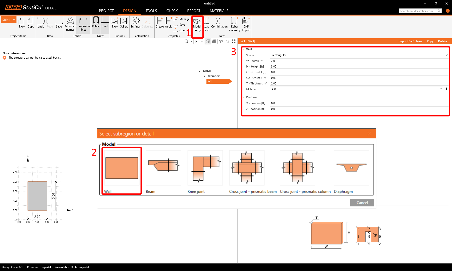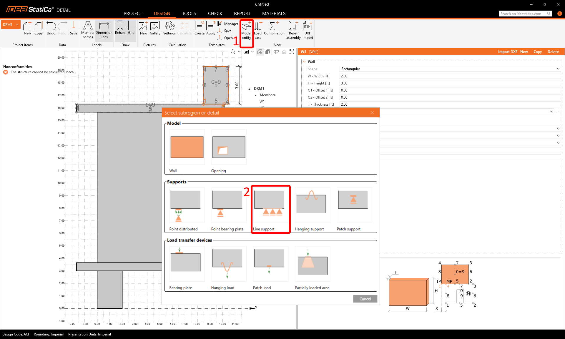 We will start with creating the Members. Use bottom in top ribbon to add a new model entity - Wall. Then, edit dimensions and position of the wall as shown in the image.