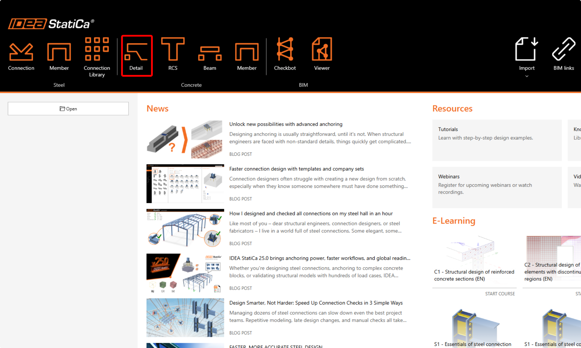 Let’s launch the IDEA StatiCa Detail application (download the newest version). In the main window of IDEA StatiCa, open the Detail application to start a new project.
