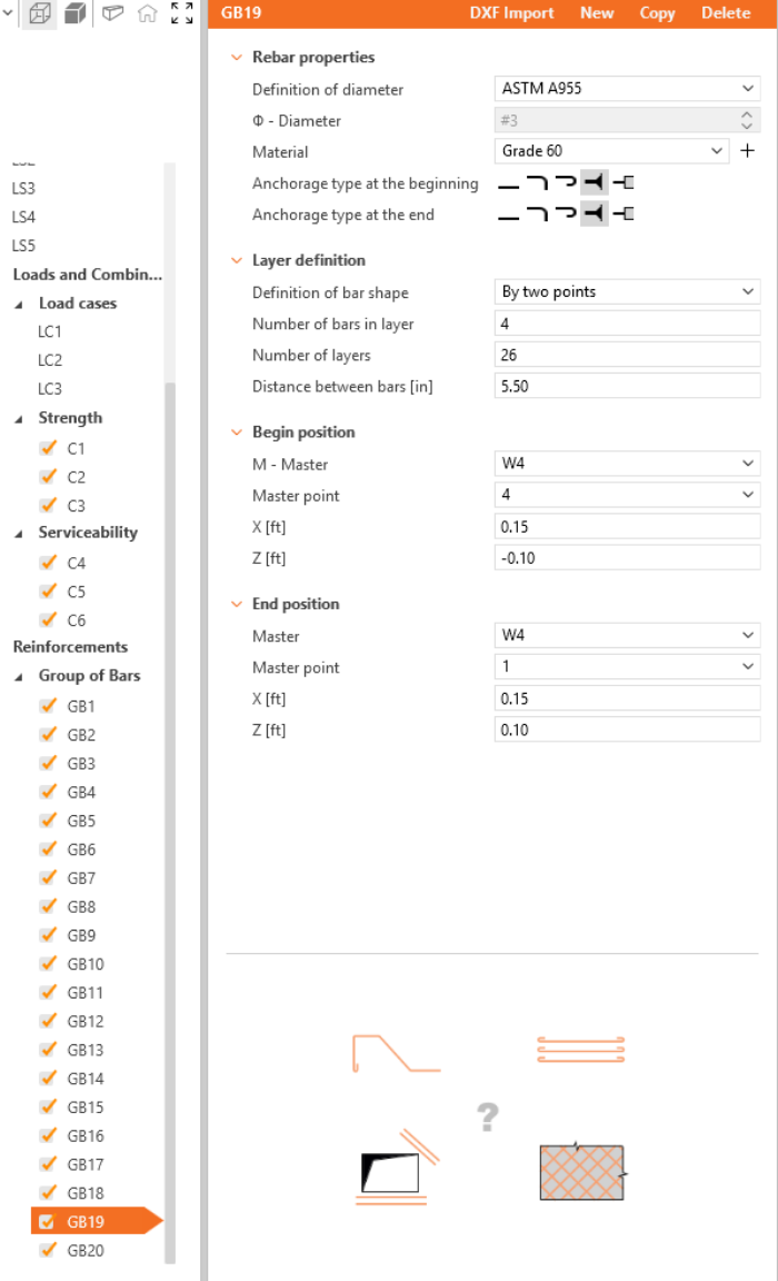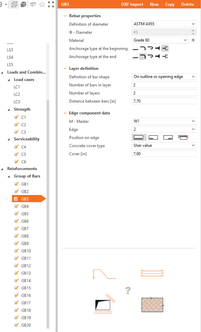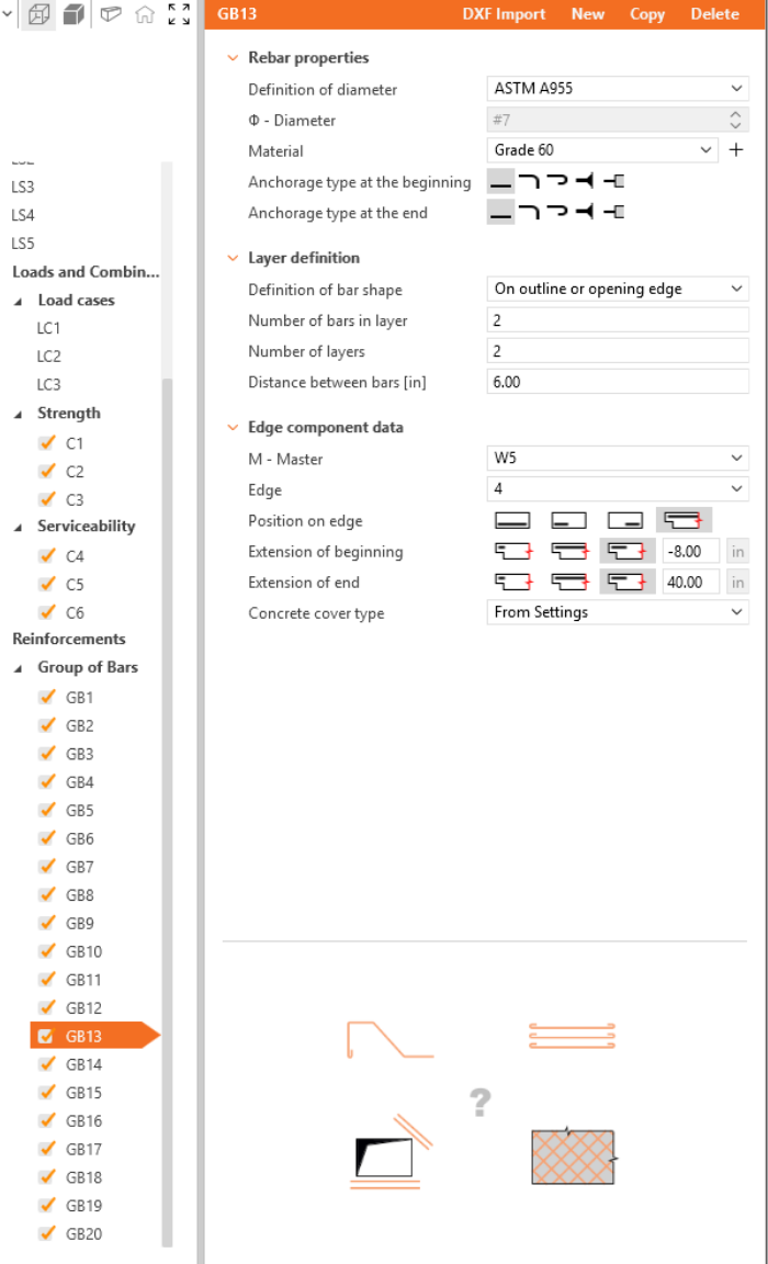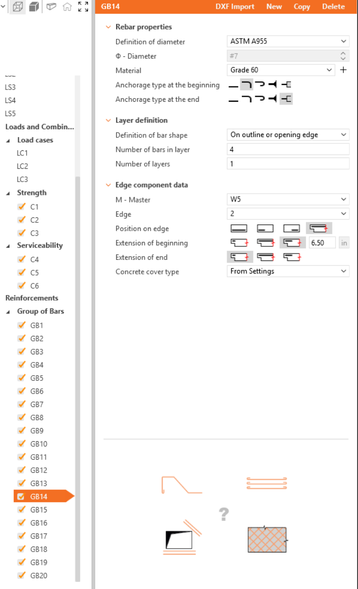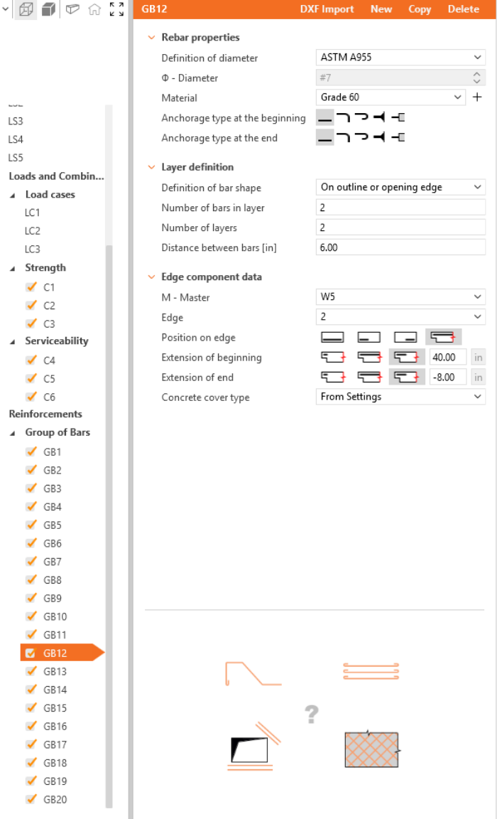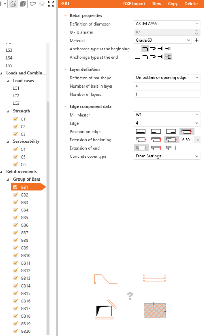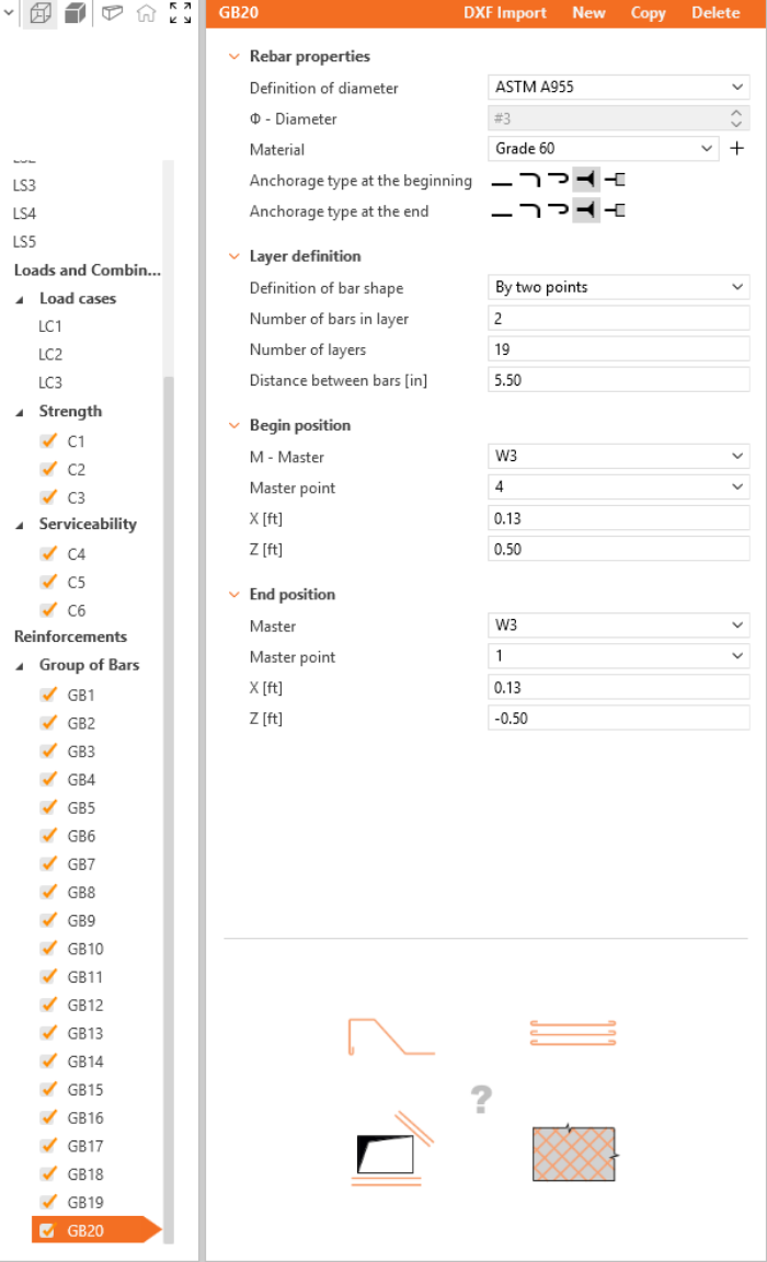Define the properties of GB1, then repeat for GB2 to GB20. You can also use Copy to copy the current reinforcement.