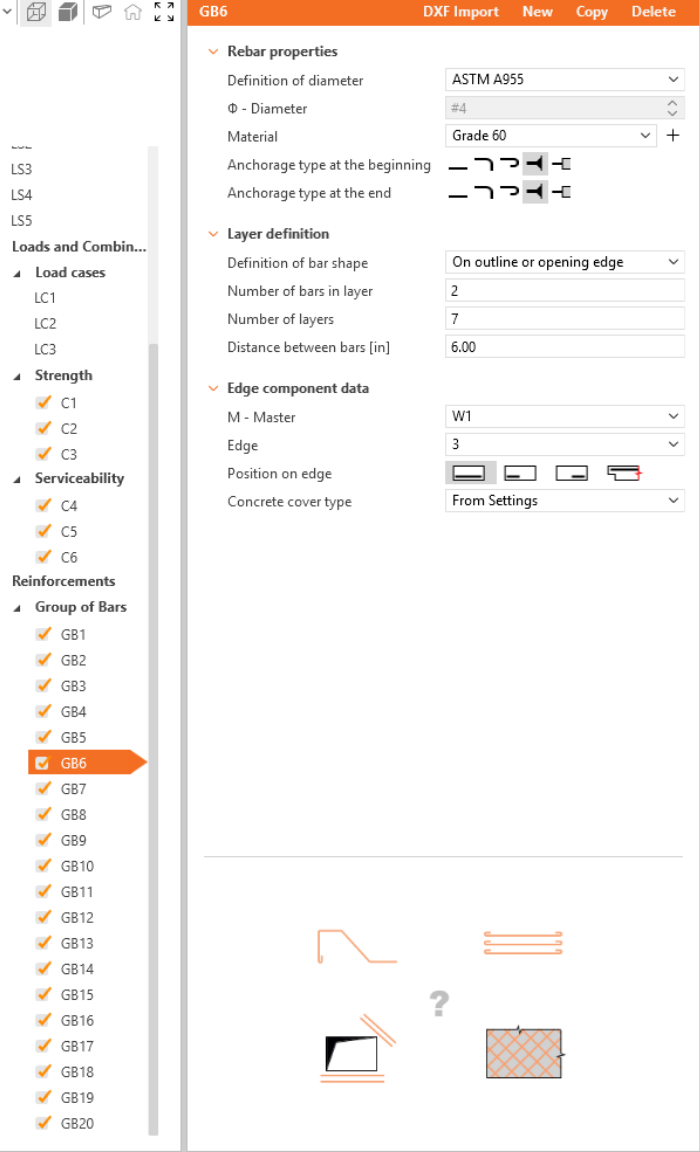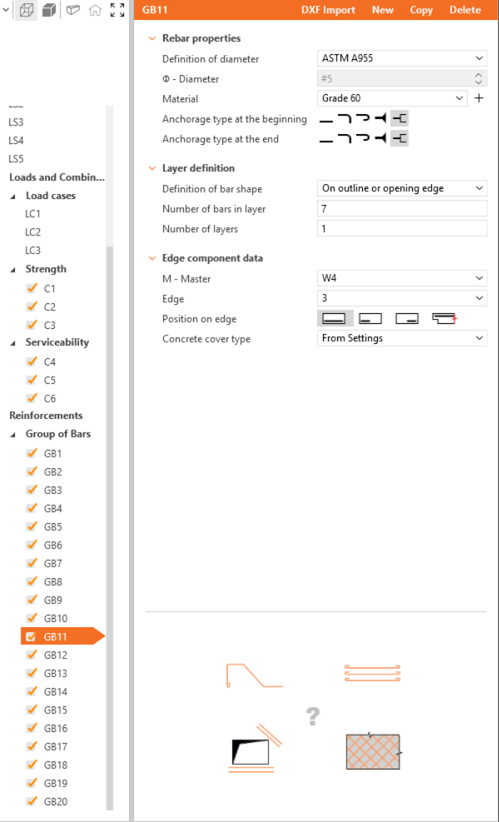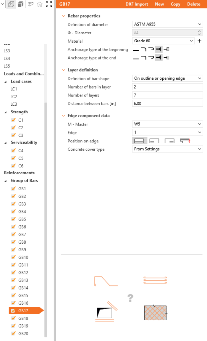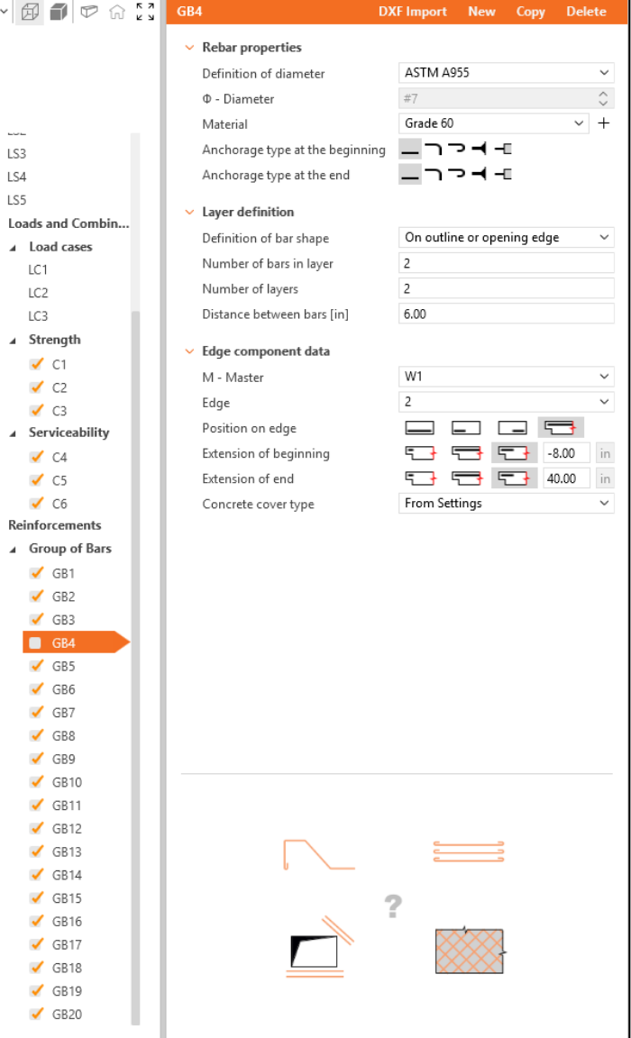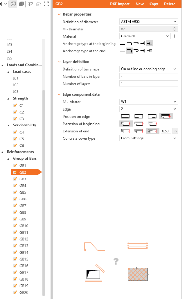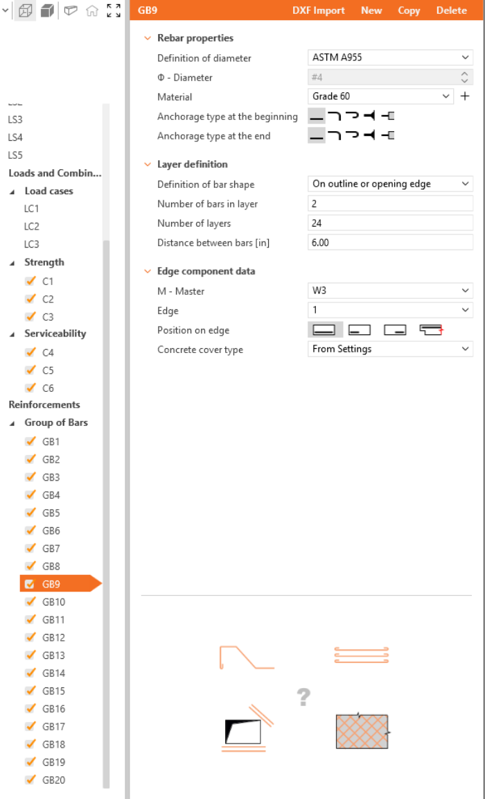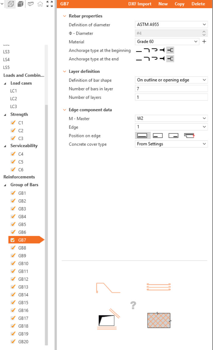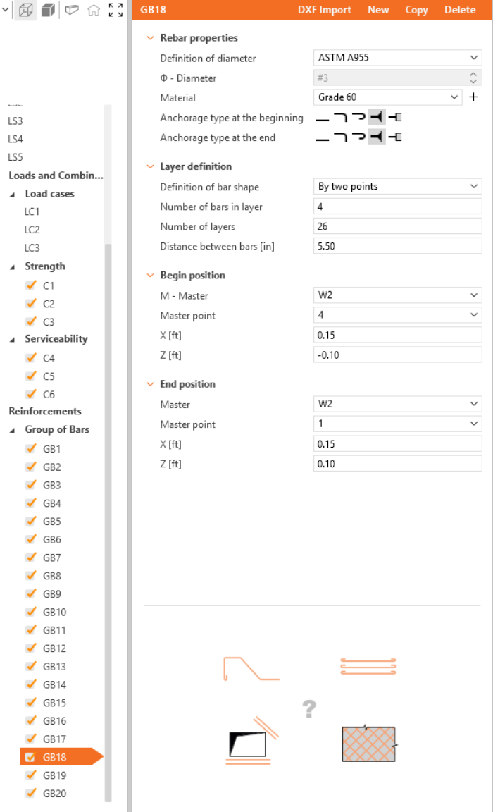 Define the properties of GB1, then repeat for GB2 to GB20. You can also use Copy to copy the current reinforcement.