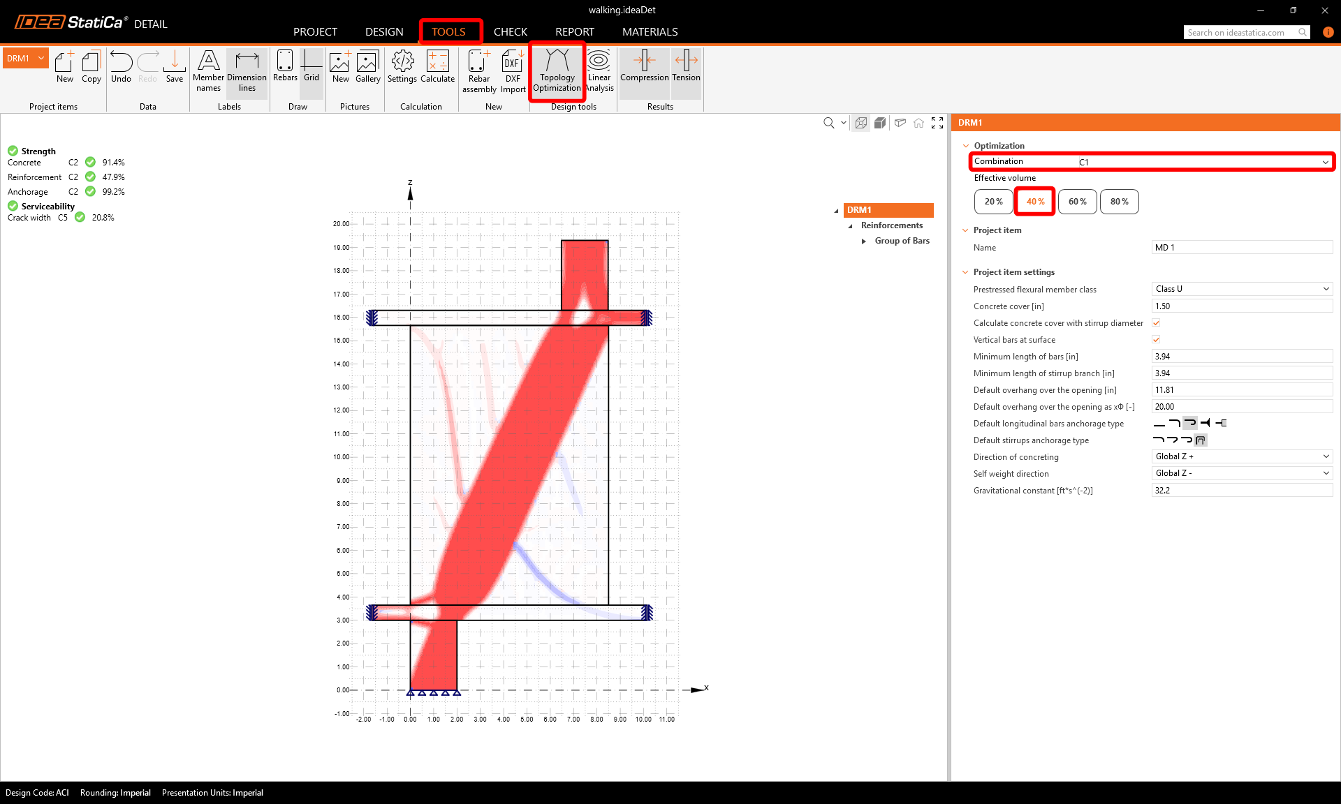 You have designed, optimized, and code-checked the reinforced walking column.