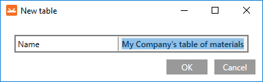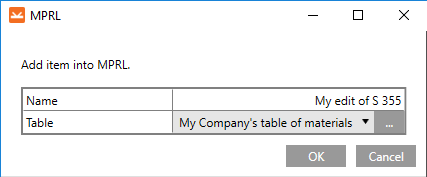 In the presented example, the edited material (My edit of S 235) will be saved under the new My Company’s table of materials table.