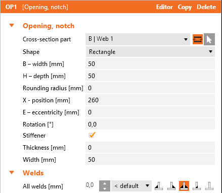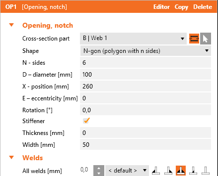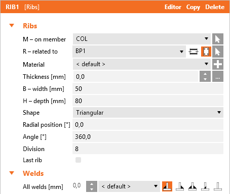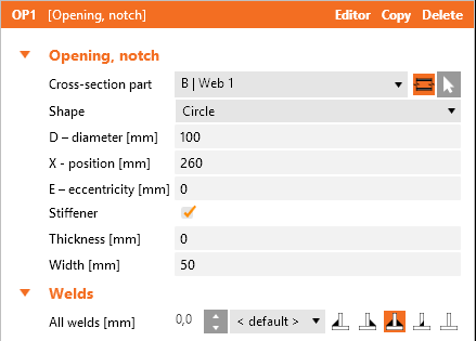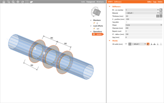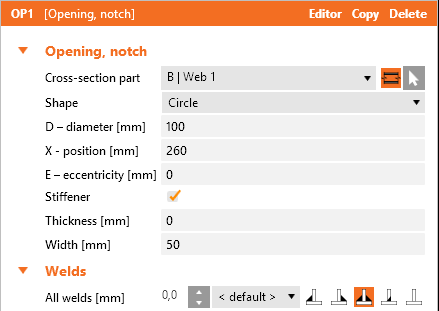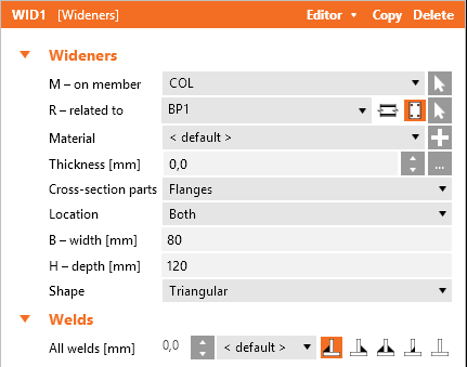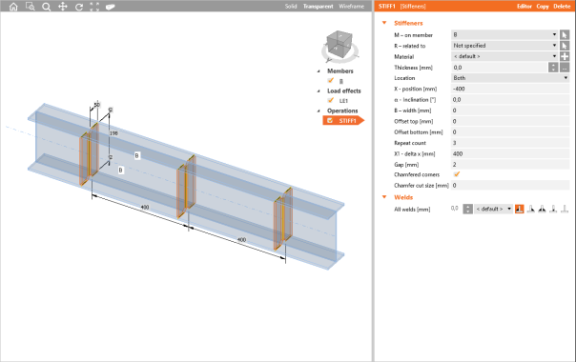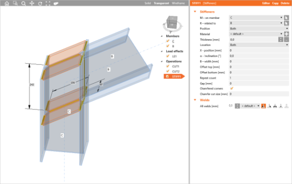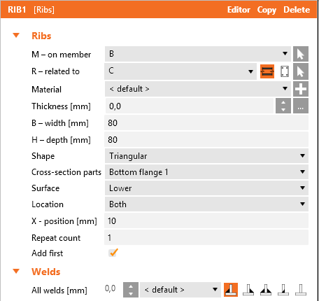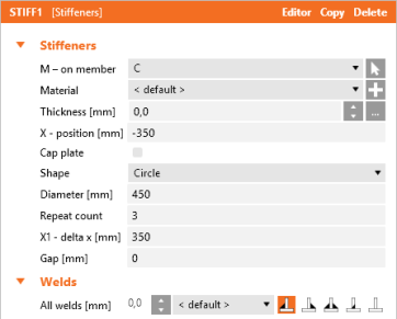 - Stiffener – properties of weld between stiffener and ‘Connected to’ member.