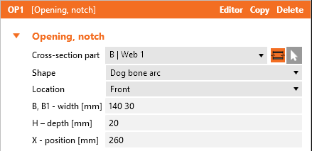 - X – position – input position of plate-to-plate connection from the beginning of modified member.