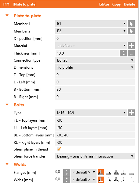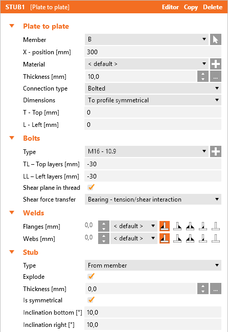 - X – position – input position of plate-to-plate connection from the beginning of connected member.