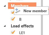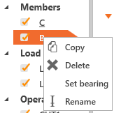 Joint members are listed in the Members list at the right edge of 3D view. Context menu above the member name contains following commands: